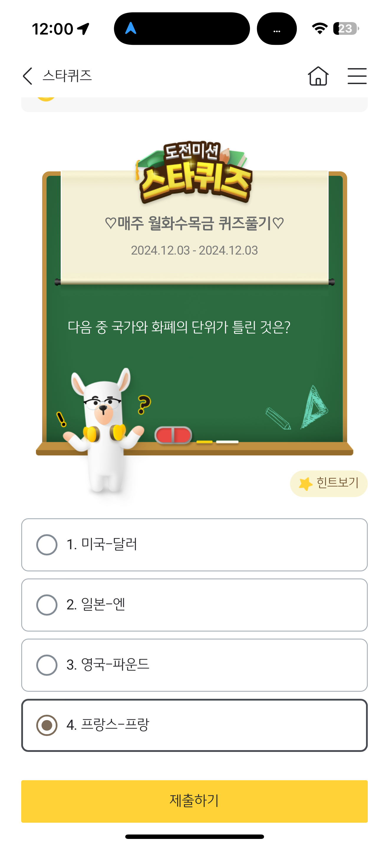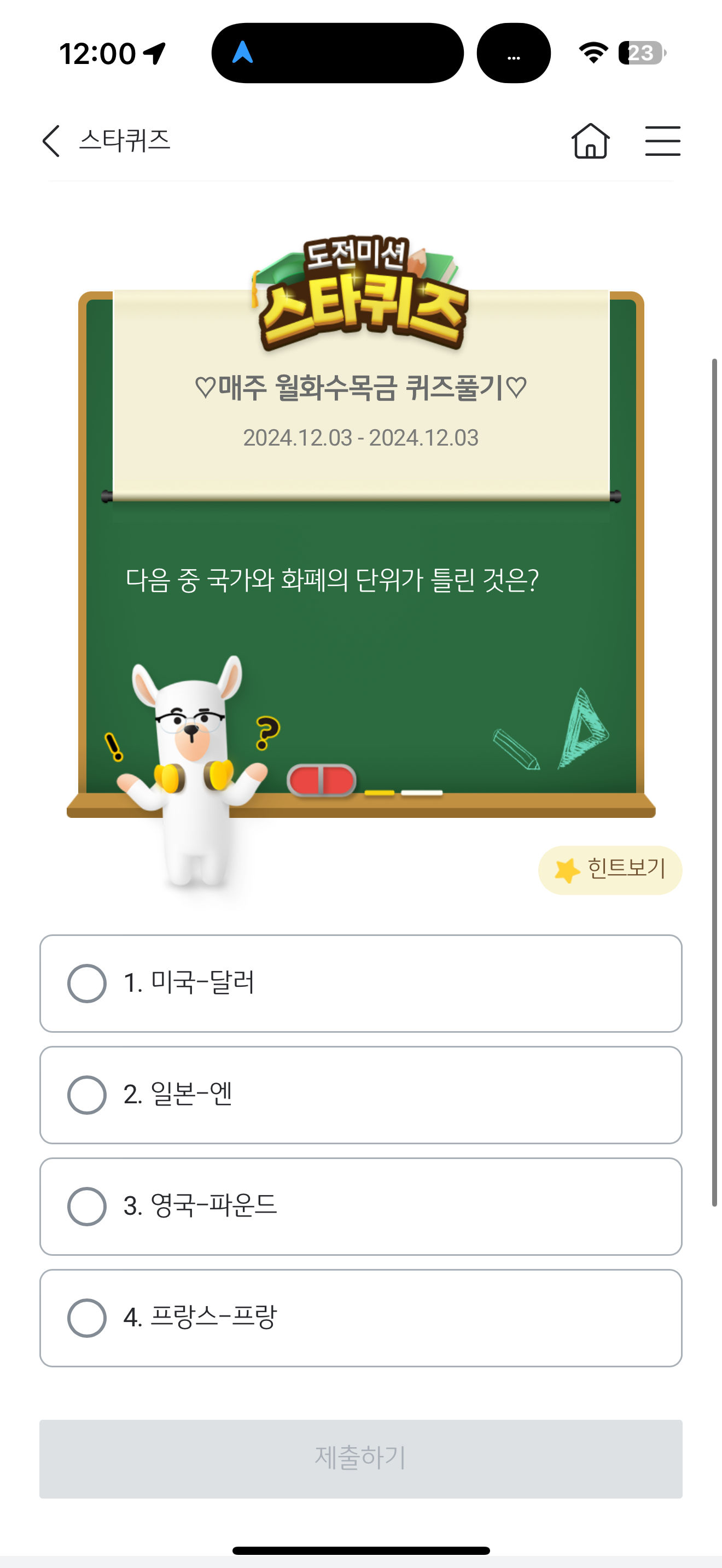KB스타뱅킹 스타퀴즈 12월 3일 문제입니다