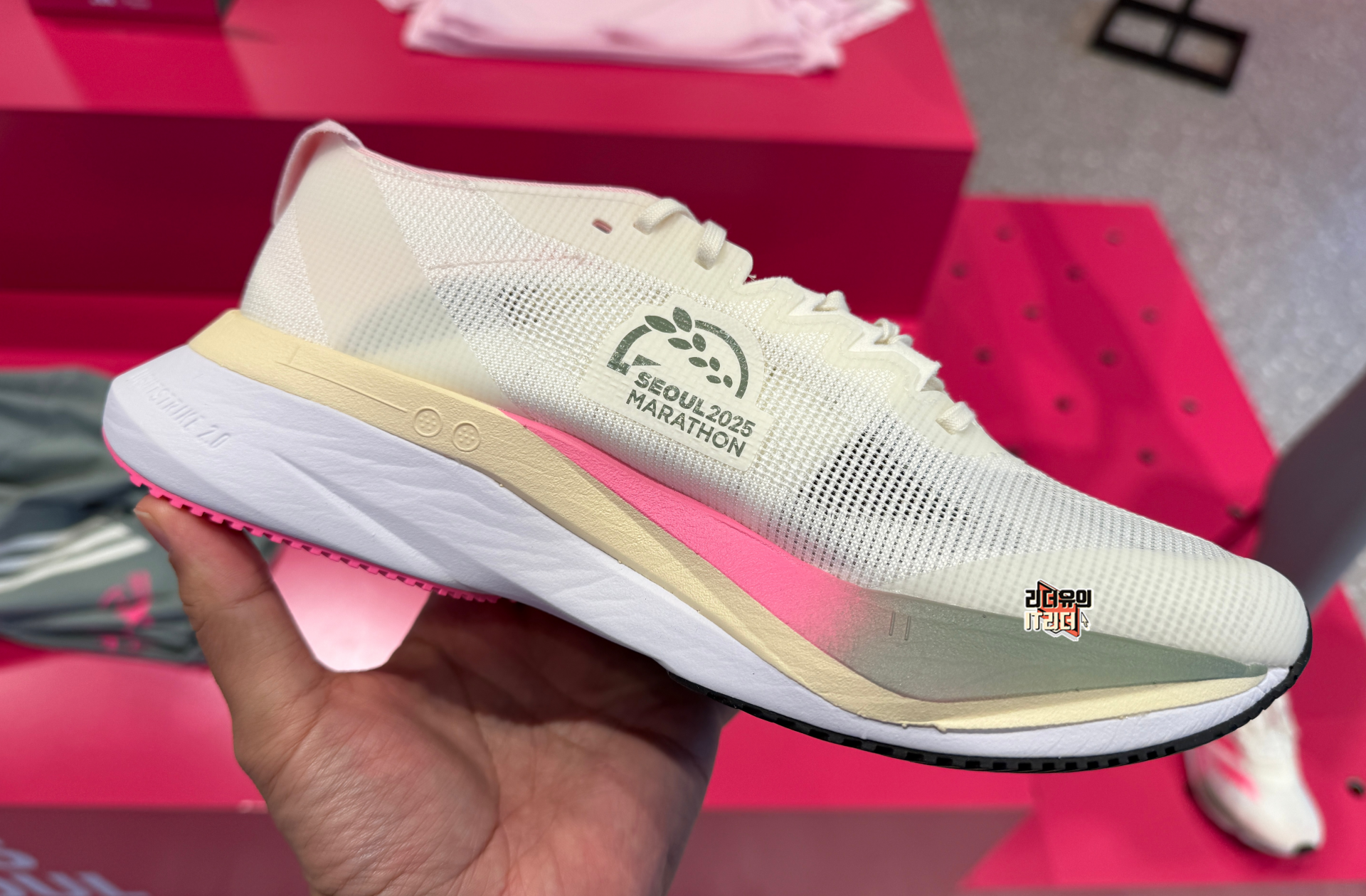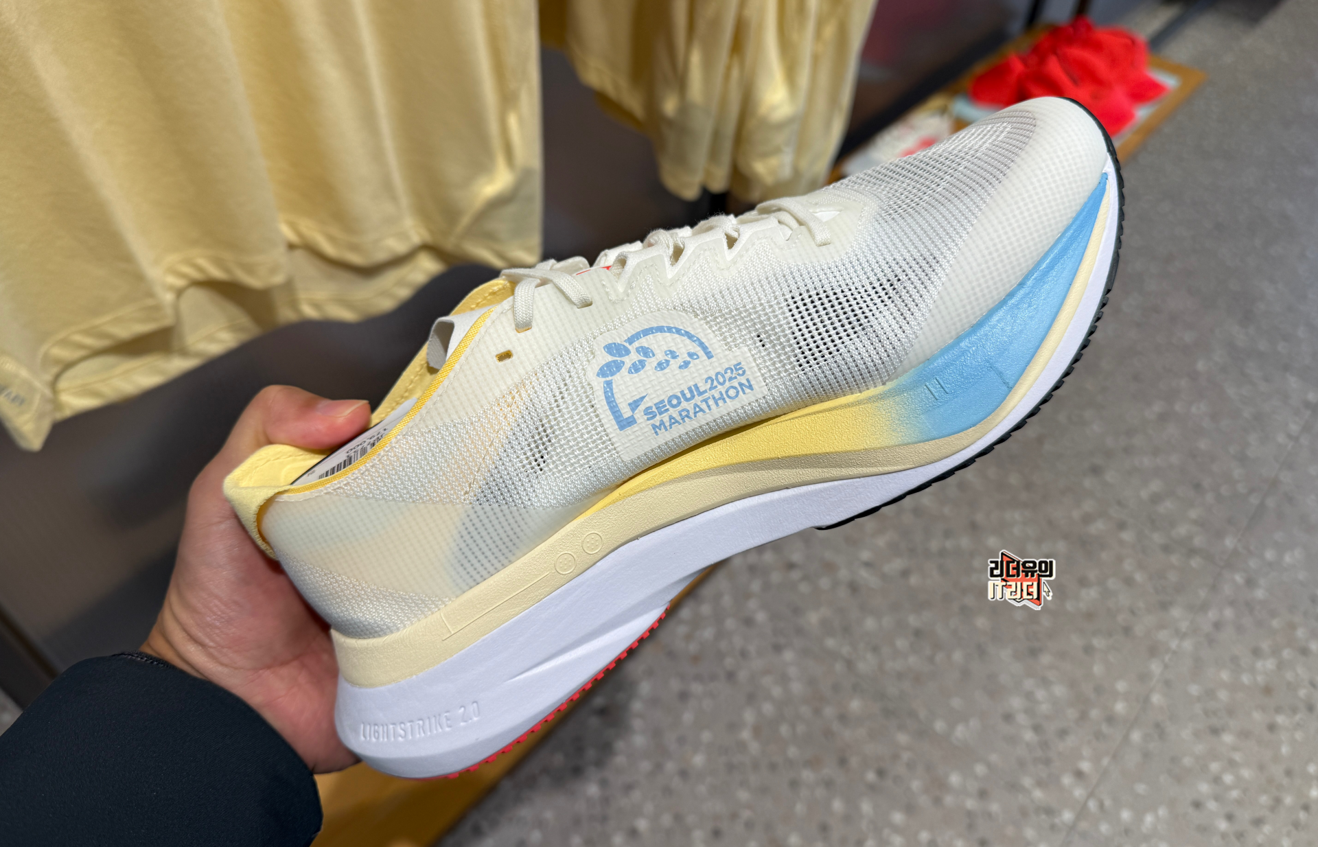 신발 안쪽면에는 서울 2025 마라톤이라고 새겨져 있습니다. 이왕이면 스페셜한 모델로 구성했으면 더 좋지 않았을까요? 재고떨이를 이렇게 했어야 하는 아쉬움이 드는 러닝화였습니다.