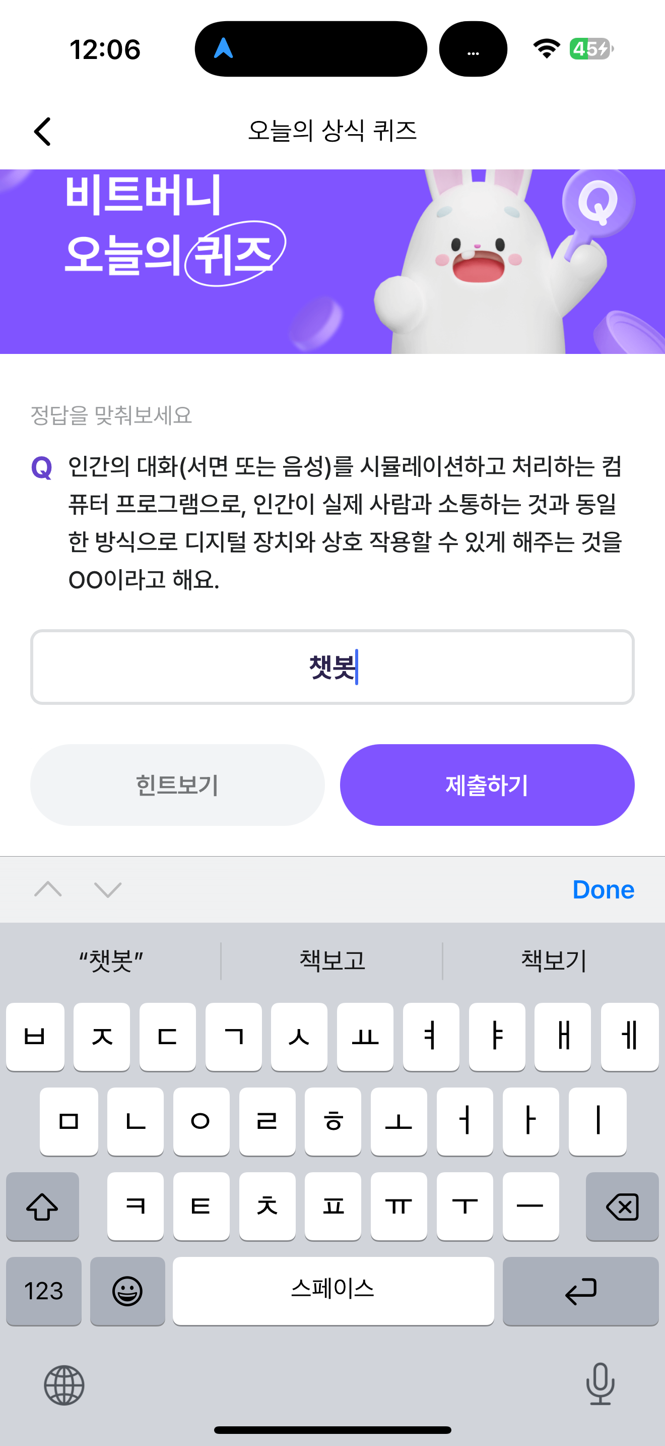 비트버니 오늘의 퀴즈 정답은 챗봇 입니다