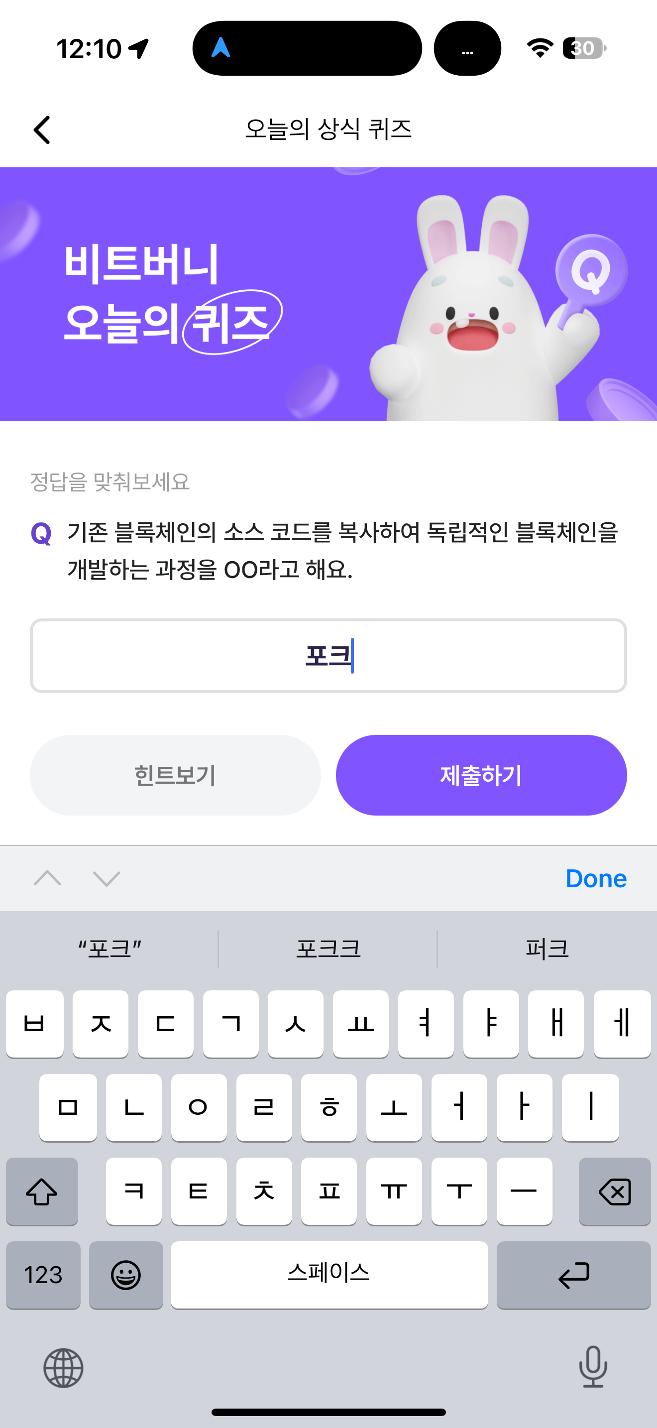 비트버니 오늘의 퀴즈 초성 힌트는 ㅍㅋ 입니다