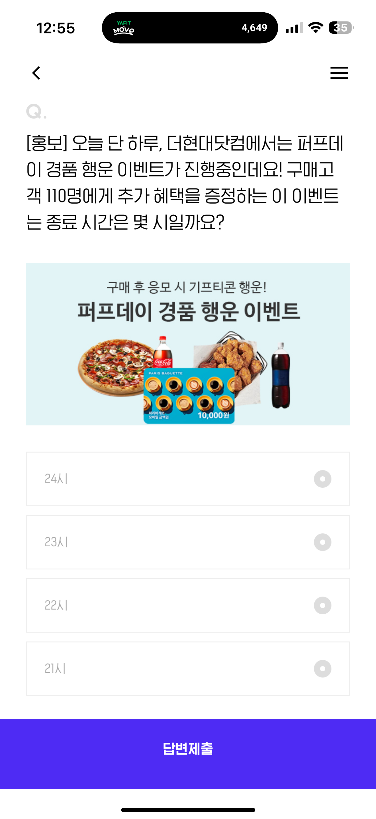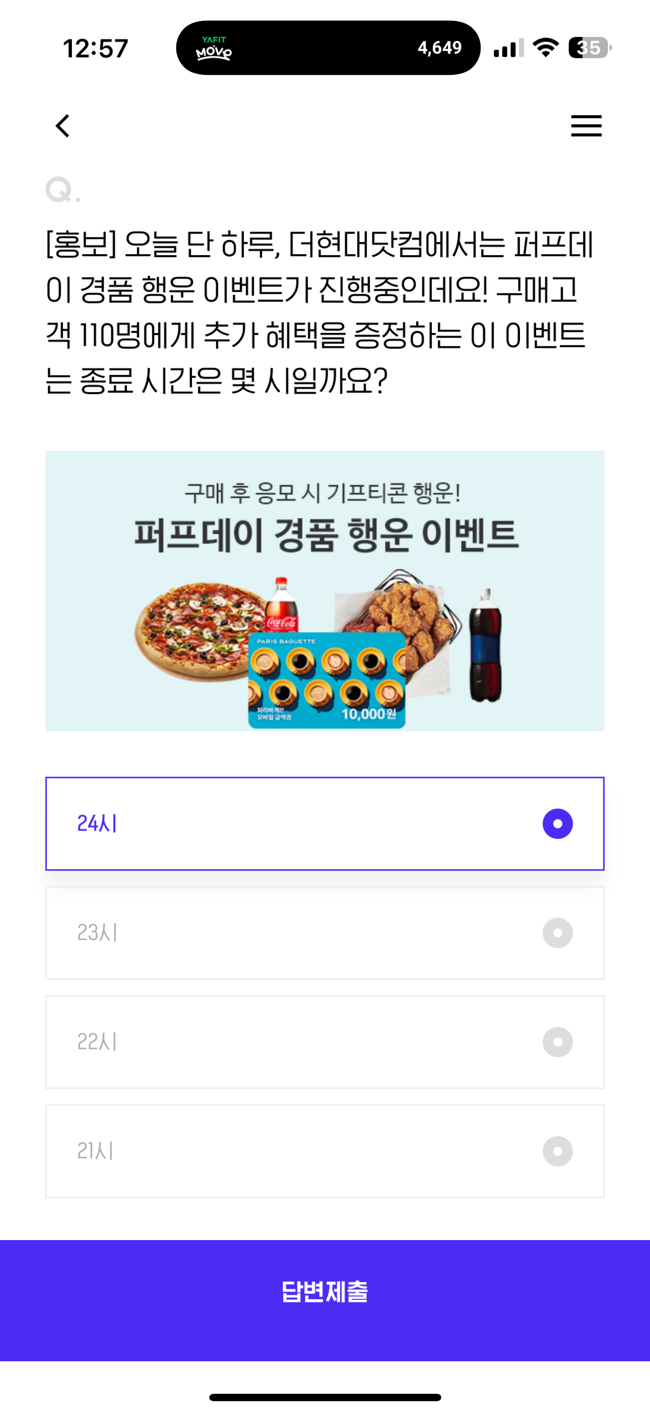 H포인트 퀴즈 정답은 24시 입니다