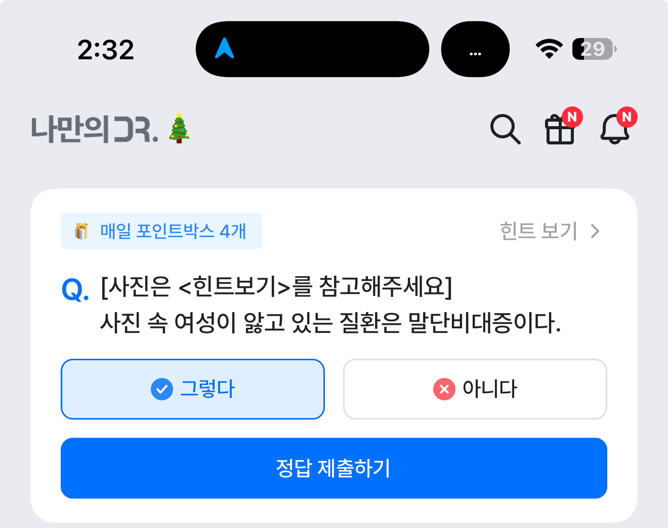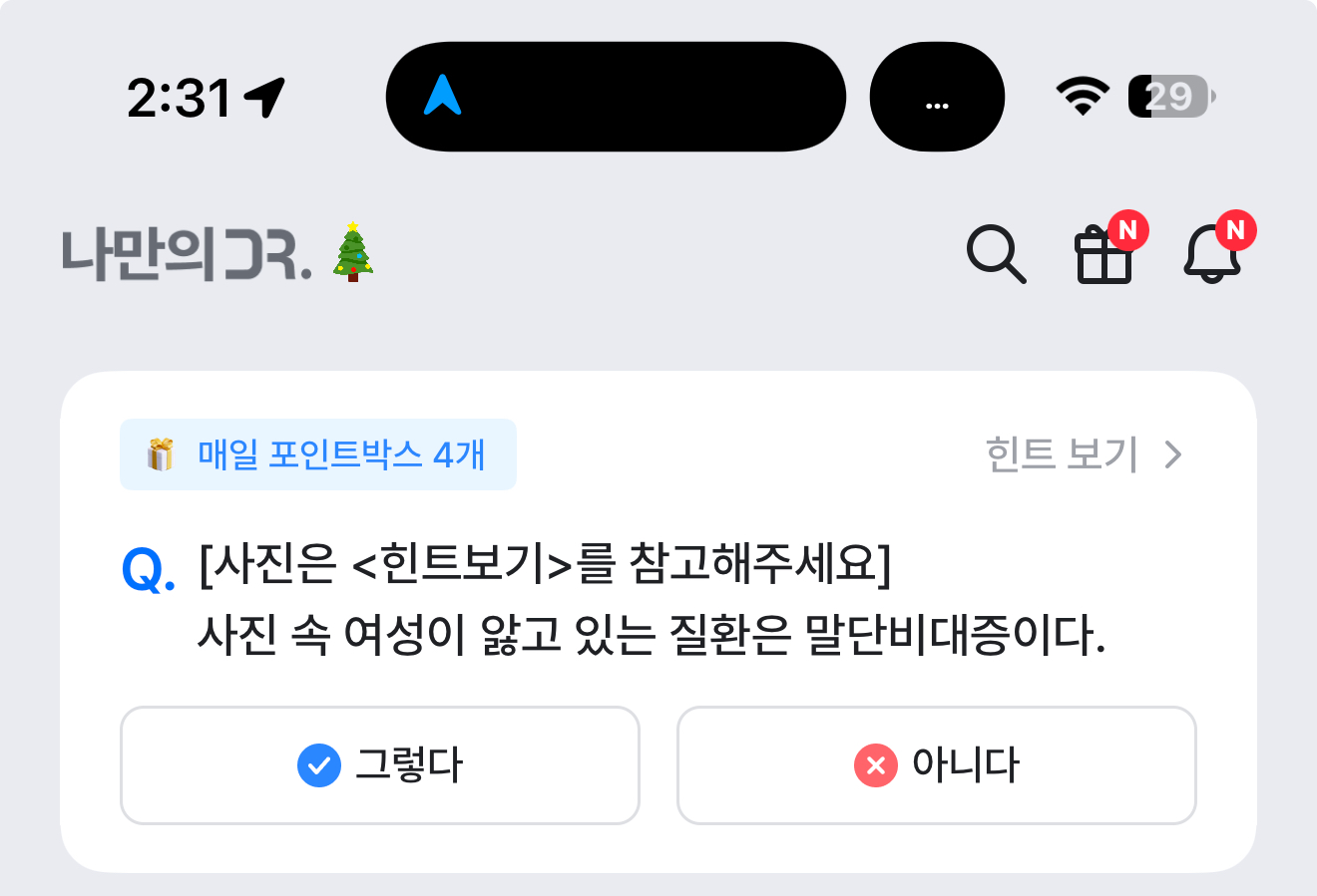 나만의 닥터 퀴즈 12월 6일 문제입니다