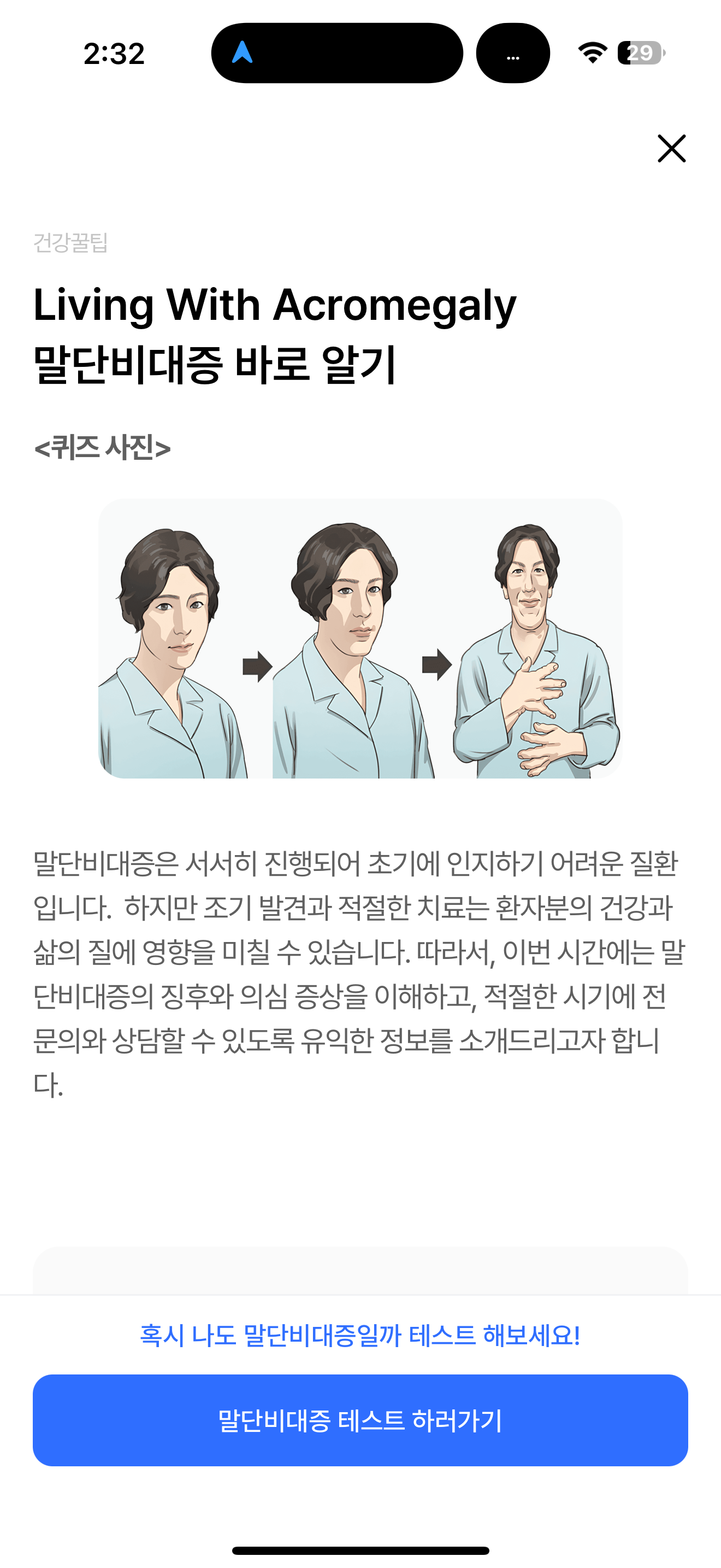 사진 속 여성이 앓고 있는 질환은 말단비대증이다. 그렇다. 아니다 선택하면 됩니다. 말단비대증을 앓고 있는 사람들이 많아지고 있습니다. 키가 크고 손발도 크고 얼굴도 길어지는 문제가 있는데요. 말단비대증이 무엇인지 알아두시면 좋을 것 같습니다.