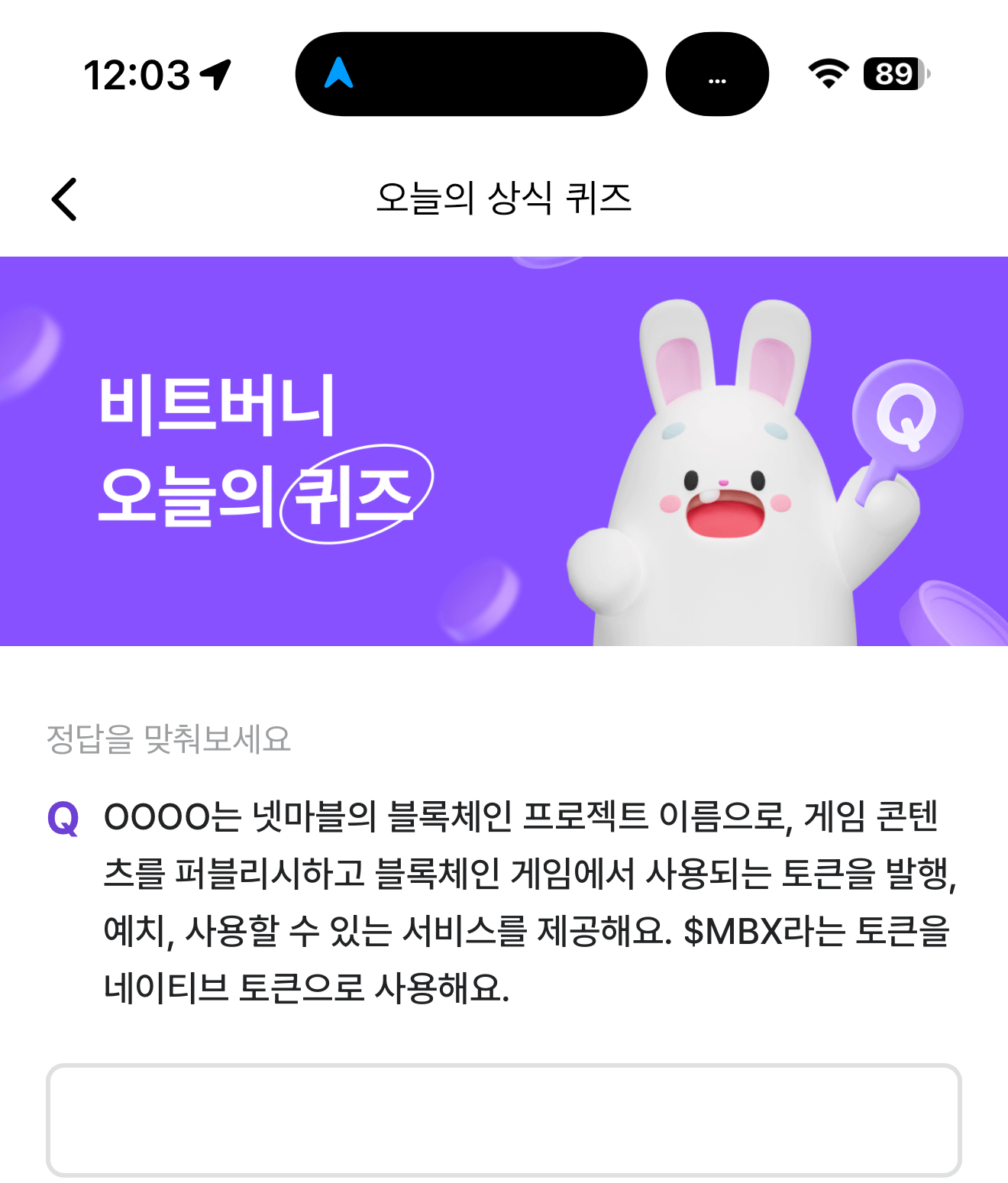 비트버니 오늘의 퀴즈 정답은 ㅁㅂㄹㅅ 입니다