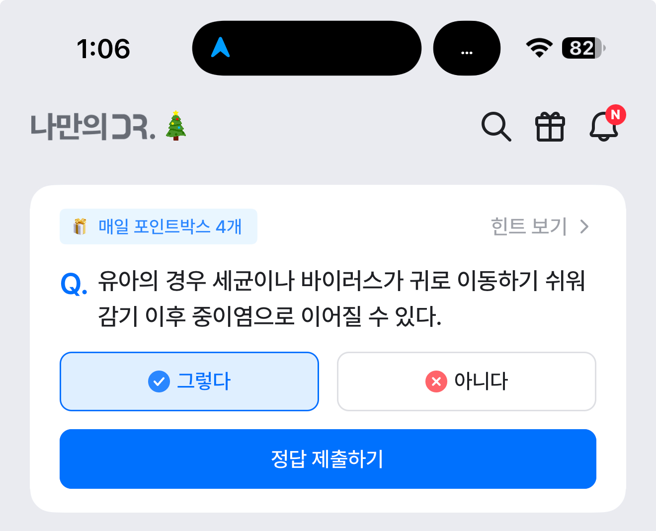 유아의 경우 세균이나 바이러스가 귀로 이동하기 쉬워 감기 이후 중이염으로 이어질 수 있다 그렇다. 아니다 선택하면 되는데요. 유아의 경우 감기 걸리면 중이염도 많이 걸리죠. 왜 그런지 그 이유를 자세하게 볼 수 있습니다. 유아의 경우 왜 중이염이 걸리는지 확인해 보세요