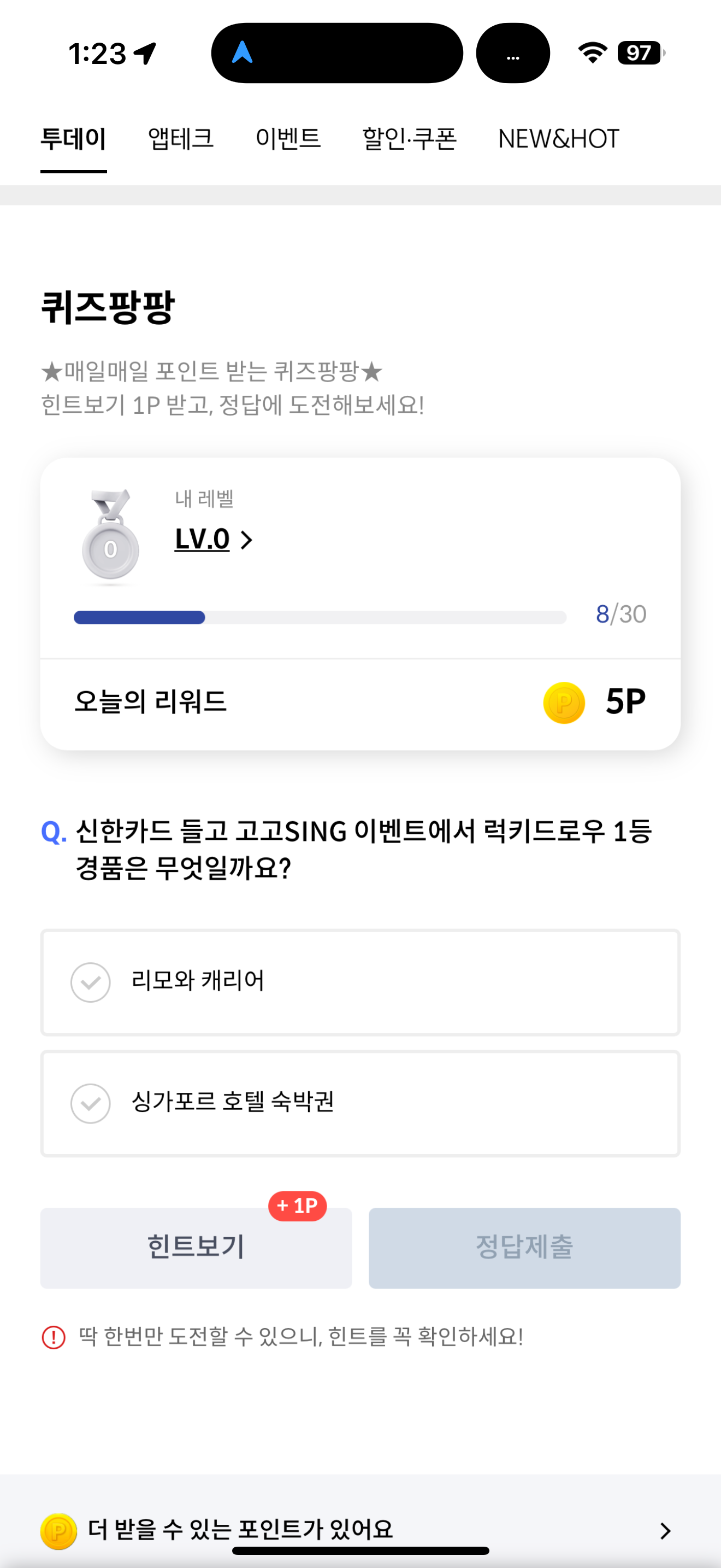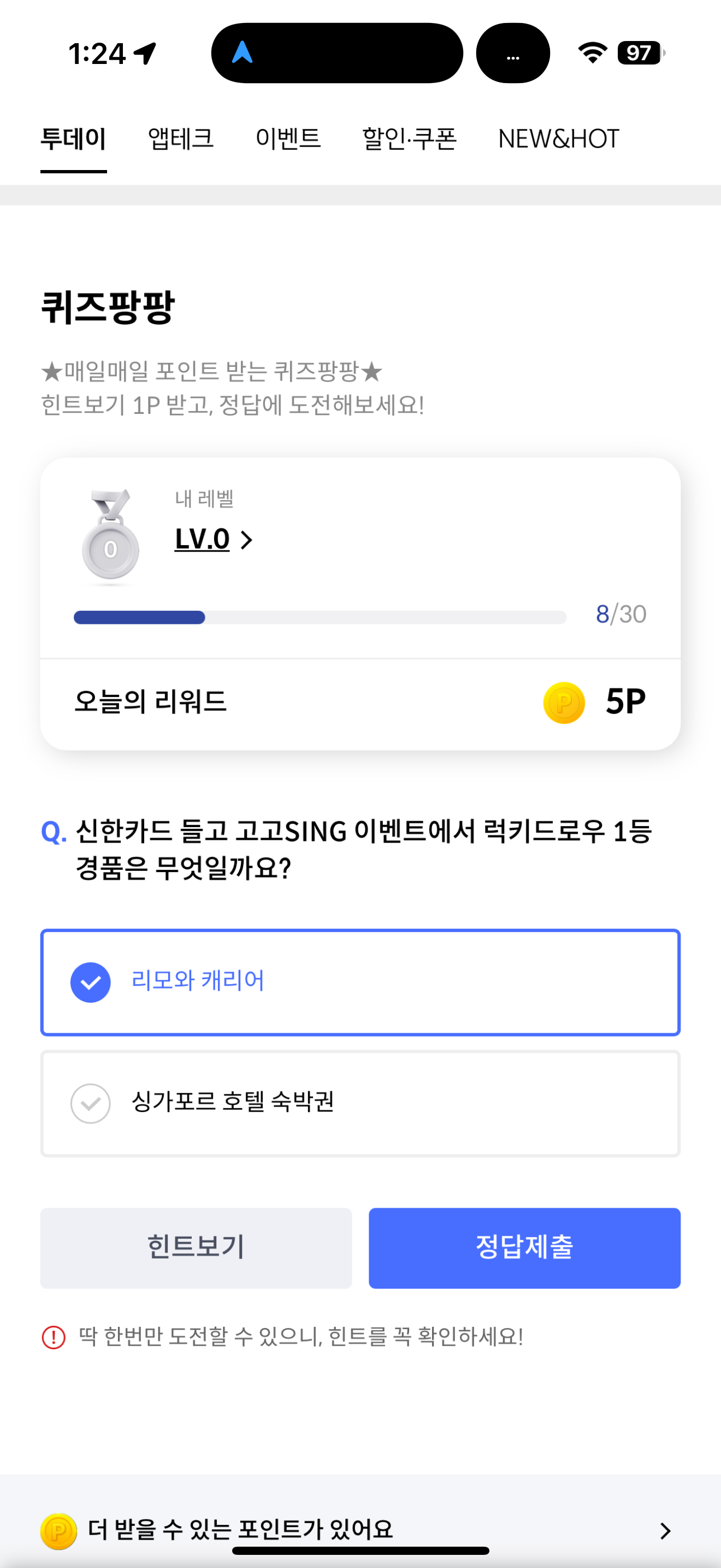 신한카드 퀴즈팡팡 정답은 리모와 캐리어 입니다