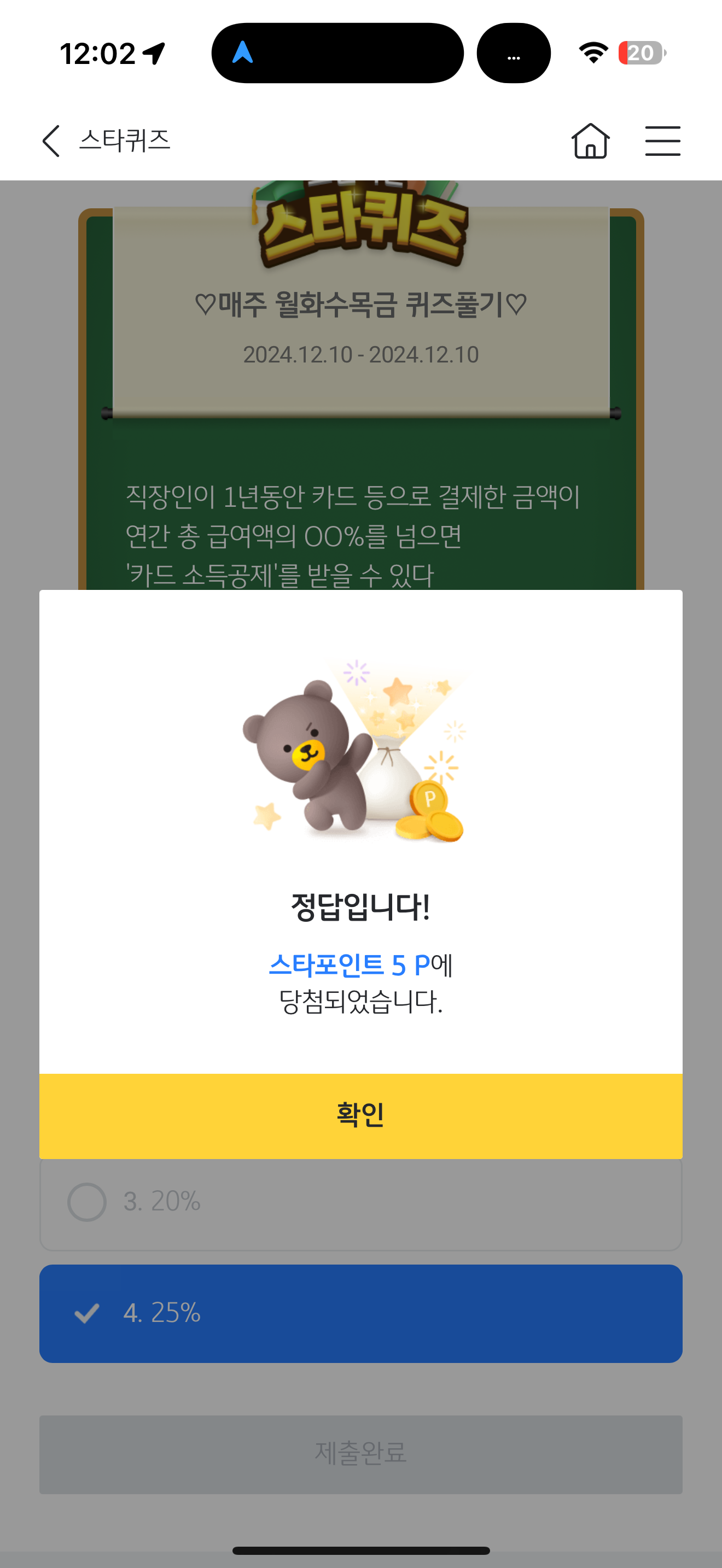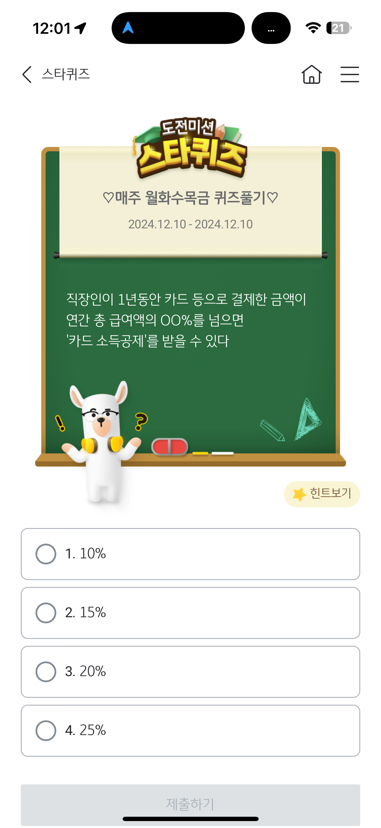 KB스타뱅킹 스타퀴즈 12월 10일 문제입니다