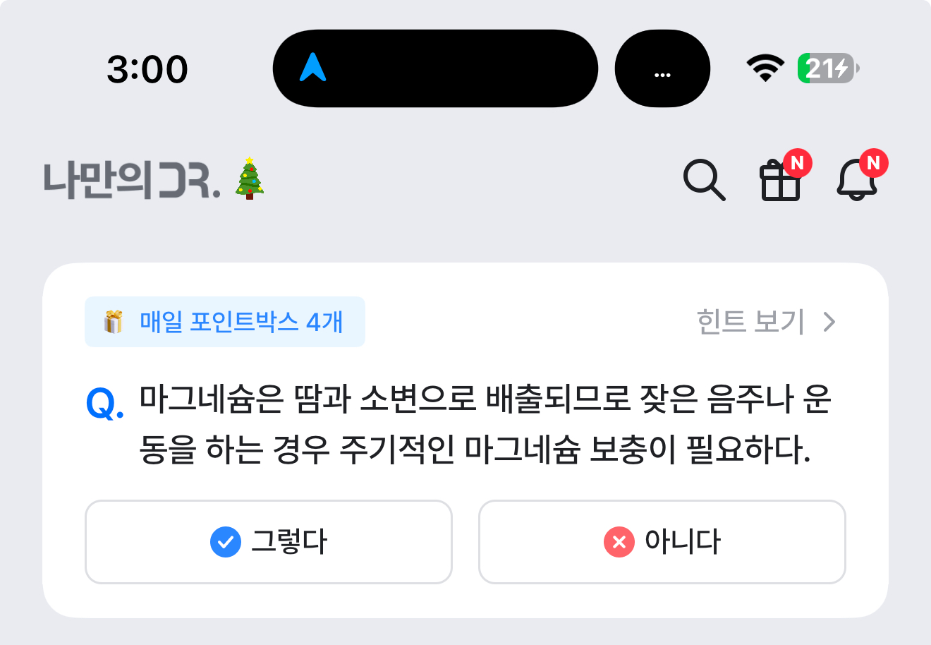 마그네슘은 땀과 소변으로 배출되므로 잦은 음주나 운동을 하는 경우 주기적인 마그네슘 보충이 필요하다. 그렇다. 아니다 선택하면 되는데요. 마그네슘이 부족하면 눈떨림 등 여러 문제가 발생하죠. 은근히 마그네슘 부족 현상을 많이 겪고 있는데요. 과연 땀과 소변으로도 마그네슘이 나가게 될까요?