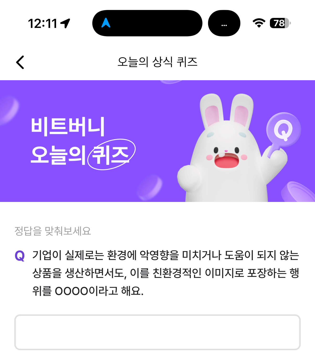 비트버니 오늘의 퀴즈 정답은 그린워싱 입니다