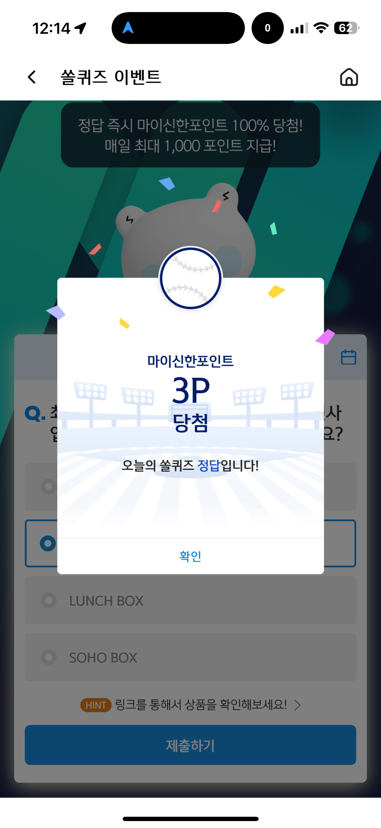 신한 슈퍼SOL 야구/상식 쏠퀴즈 정답은 TAX BOX 입니다