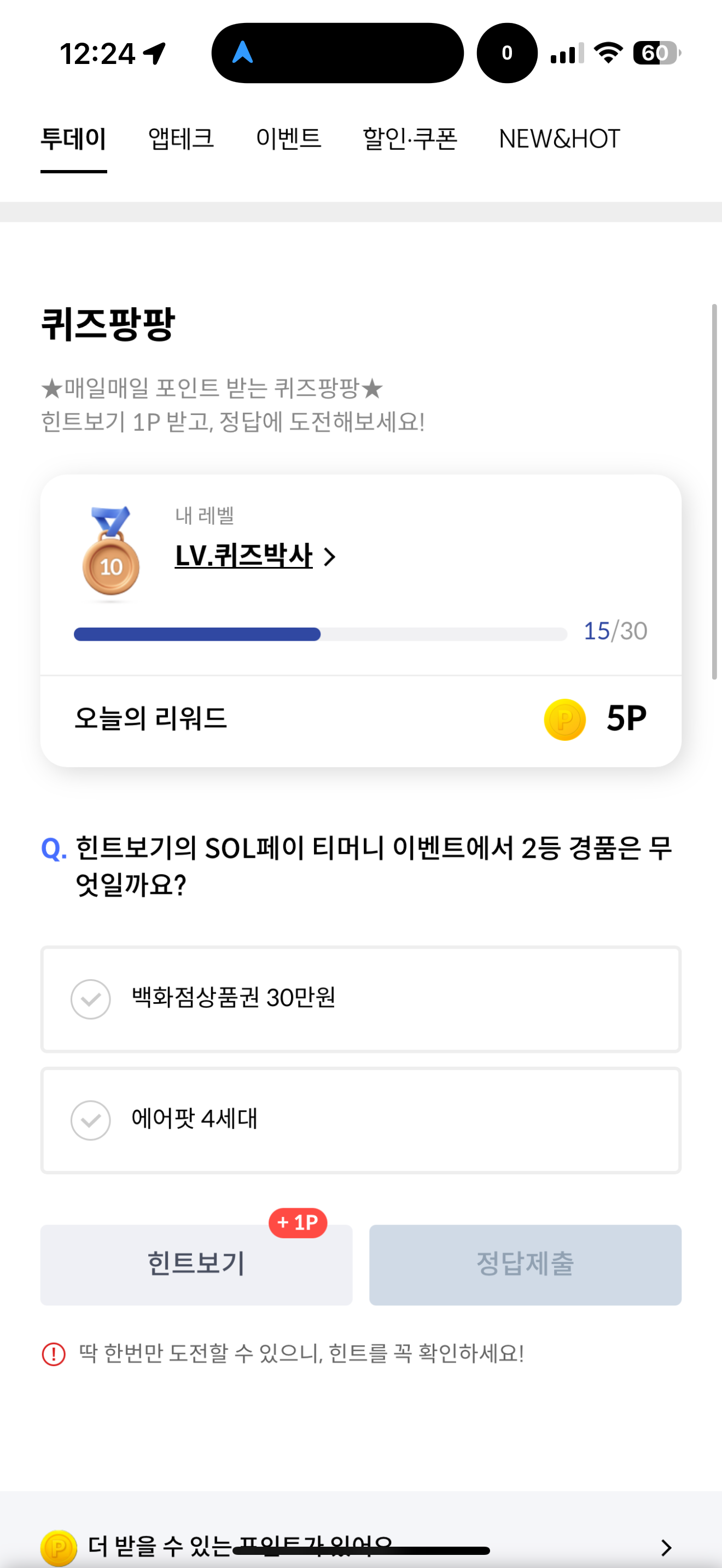 힌트보기의 SOL페이 티머니 이벤트에서 2등 경품은 무엇일까요? 보기는 1. 백화점상품권 30만원 2. 에어팟 4세대 입니다 SOL페이 티머니 이벤트가 진행되고 있습니다. 티머니를 사용하고 신한카드를 이용하는 분이라면 주목해 봐야 할 이벤트이니 참고해서 득템하세요