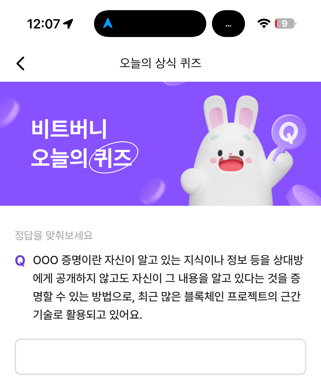비트버니 오늘의 퀴즈 정답은 영지식 입니다