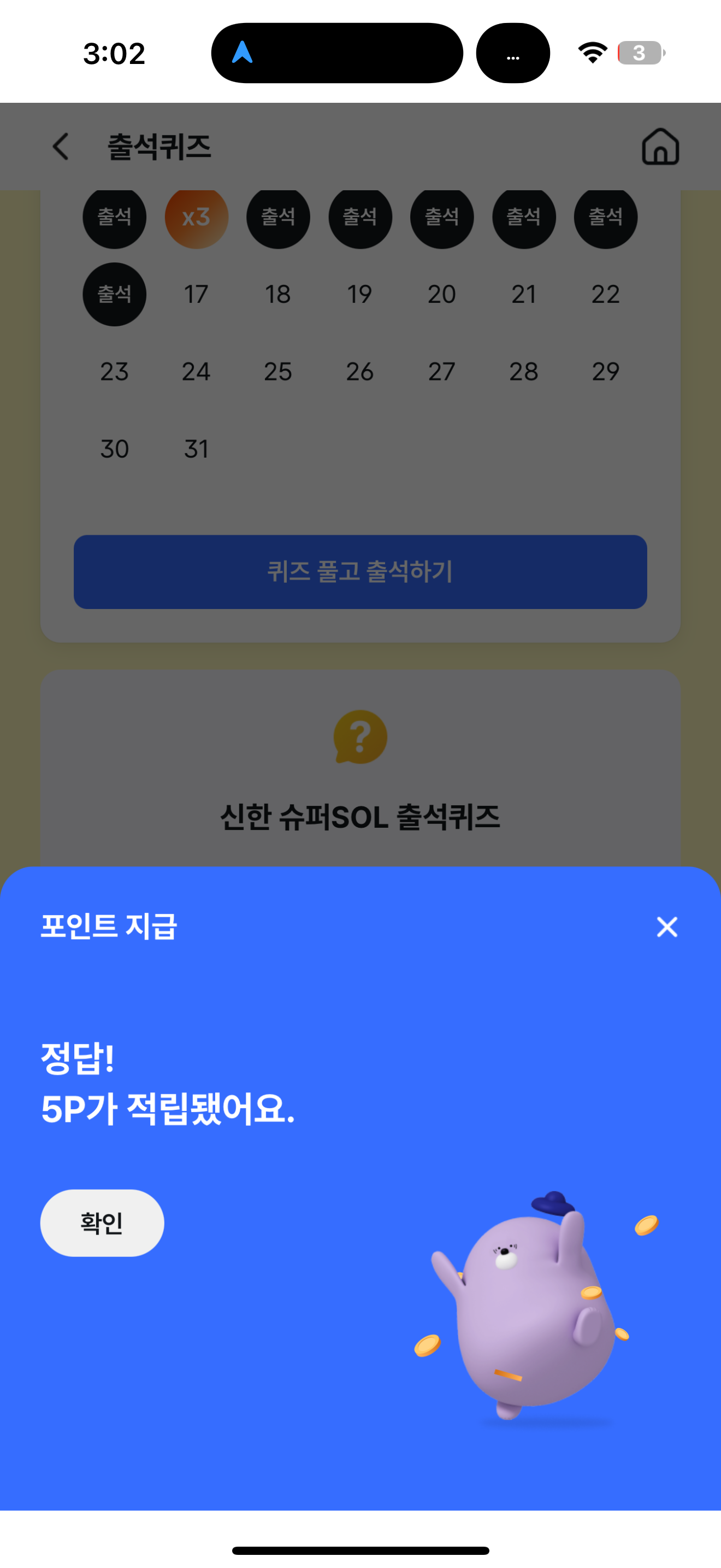 신한 슈퍼SOL 출석퀴즈 정답은 X 입니다