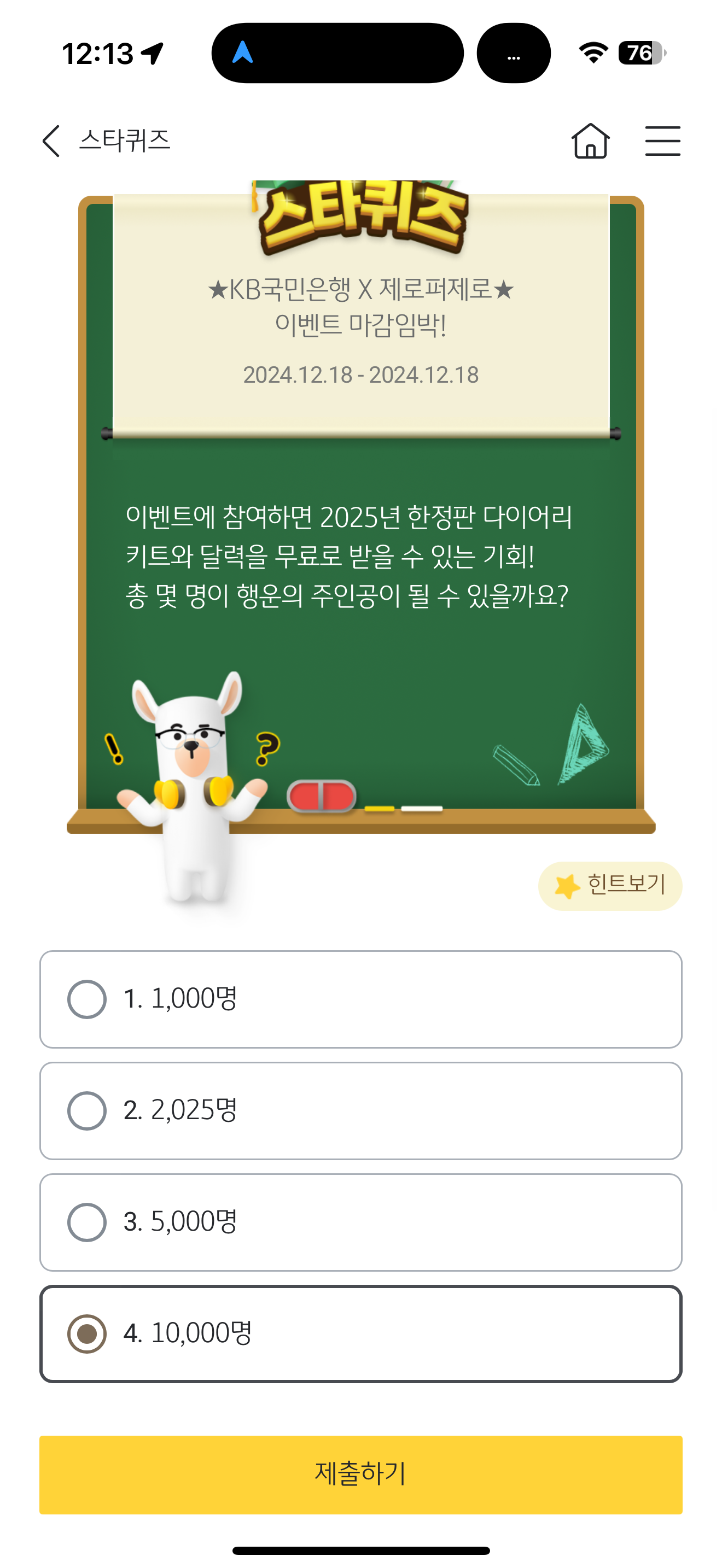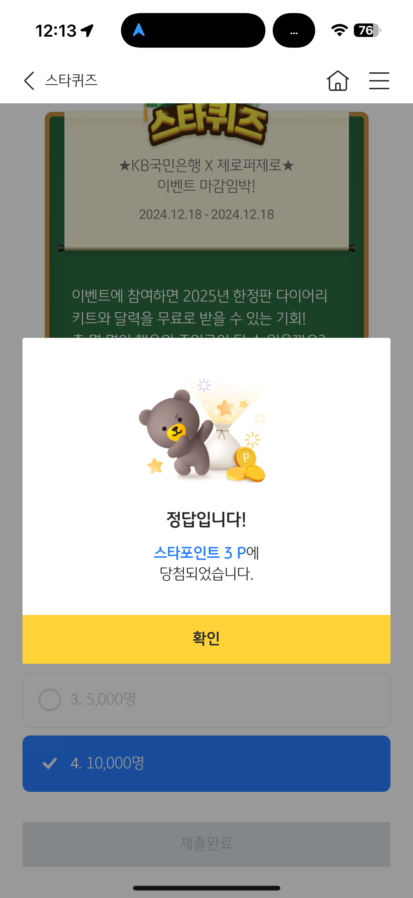 KB스타뱅킹 스타퀴즈 정답은 4.10,000명 입니다