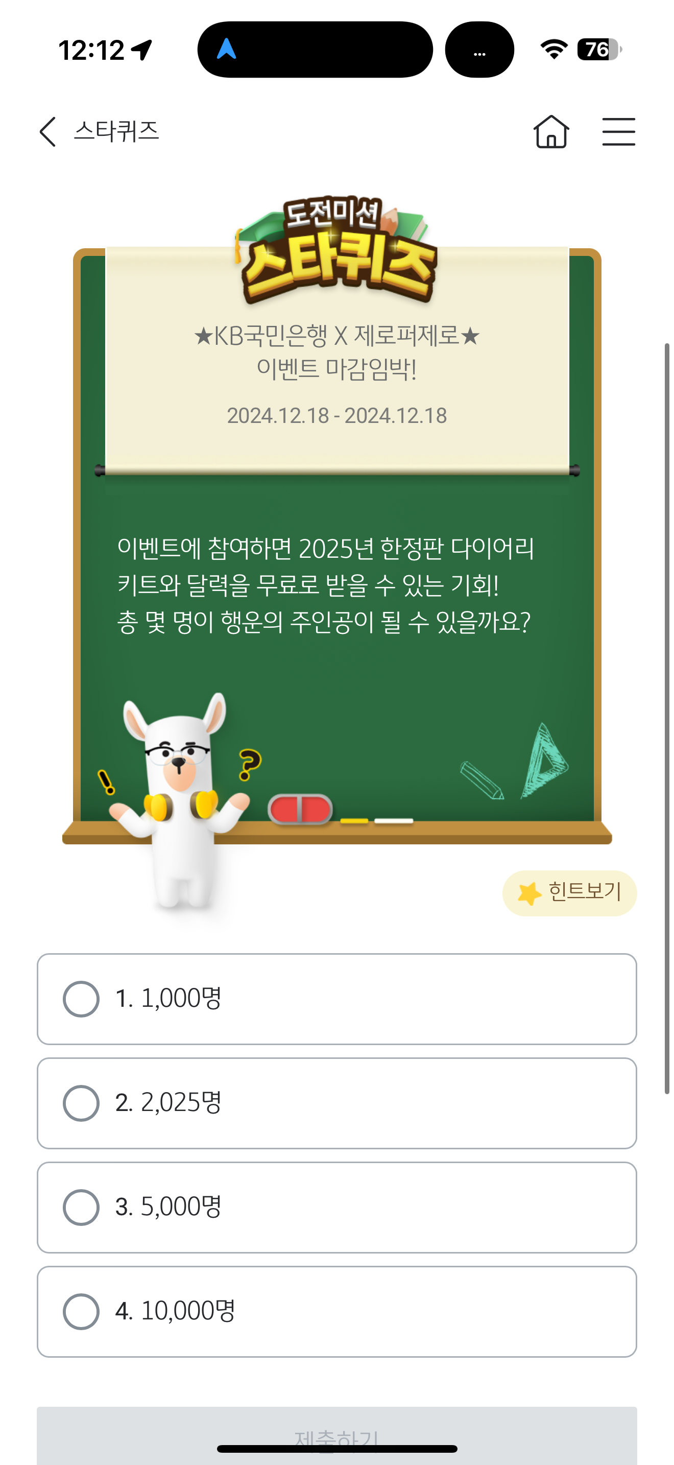 kB스타뱅킹 스타퀴즈 12월 18일 문제입니다