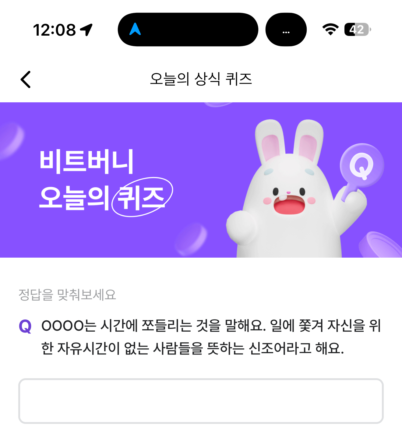 비트버니 오늘의 퀴즈 정답은 타임푸어 입니다