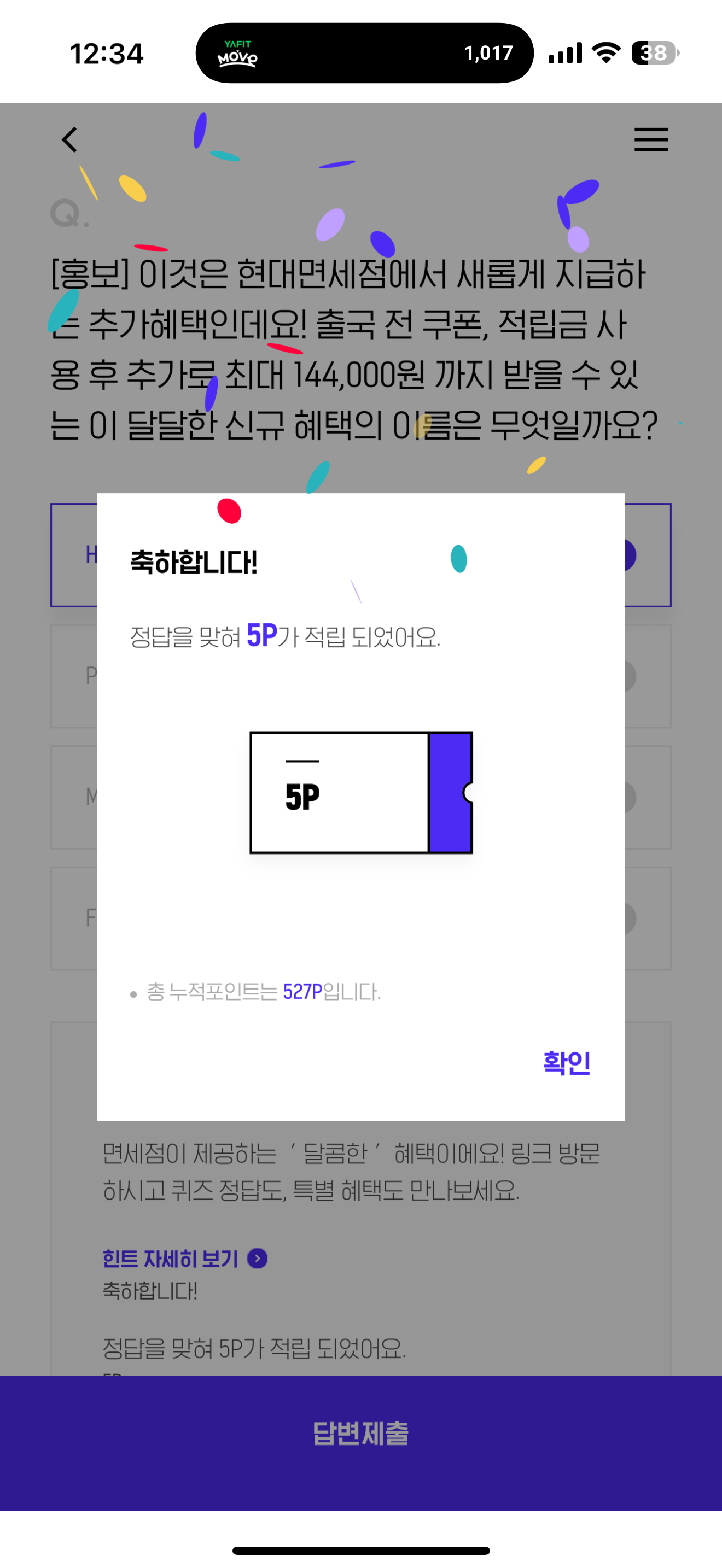 이것은 현대면세점에서 새롭게 지급하는 추가혜택인데요! 출국 전 쿠폰, 적립금 사용 후 추가로 최대 144,000원 까지 받을 수 있는 이 달달한 신규 혜택의 이름은 무엇일까요? 보기는 1. H.oney 2. P.oney 3. M.oney 4. F.oney 입니다. 현대면세점에서 새롭게 지급하는 추가 혜택이라고 하니 해외 나가는 분들은 참고해 두세요
