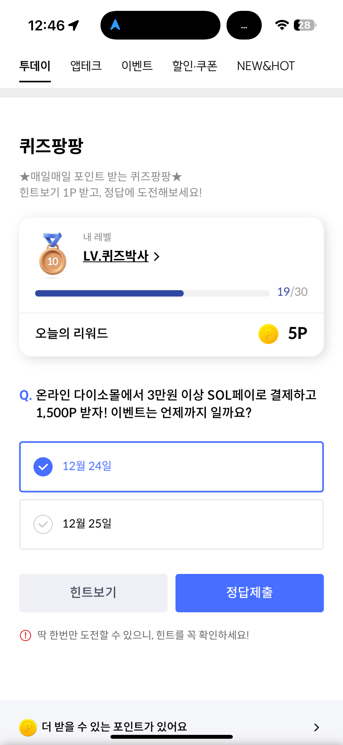 신한카드 퀴즈팡팡 정답은 12월 24일 입니다