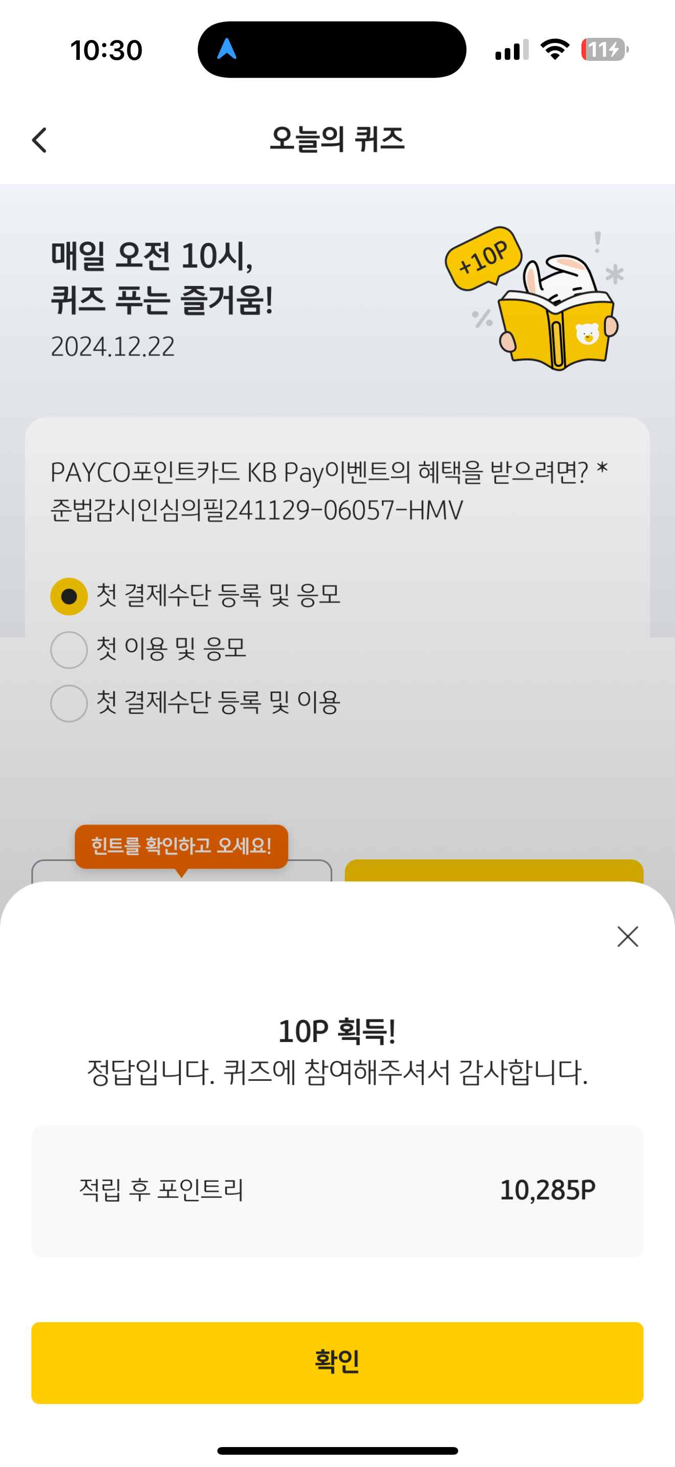 KB Pay 오늘의 퀴즈 12월 22일 문제입니다