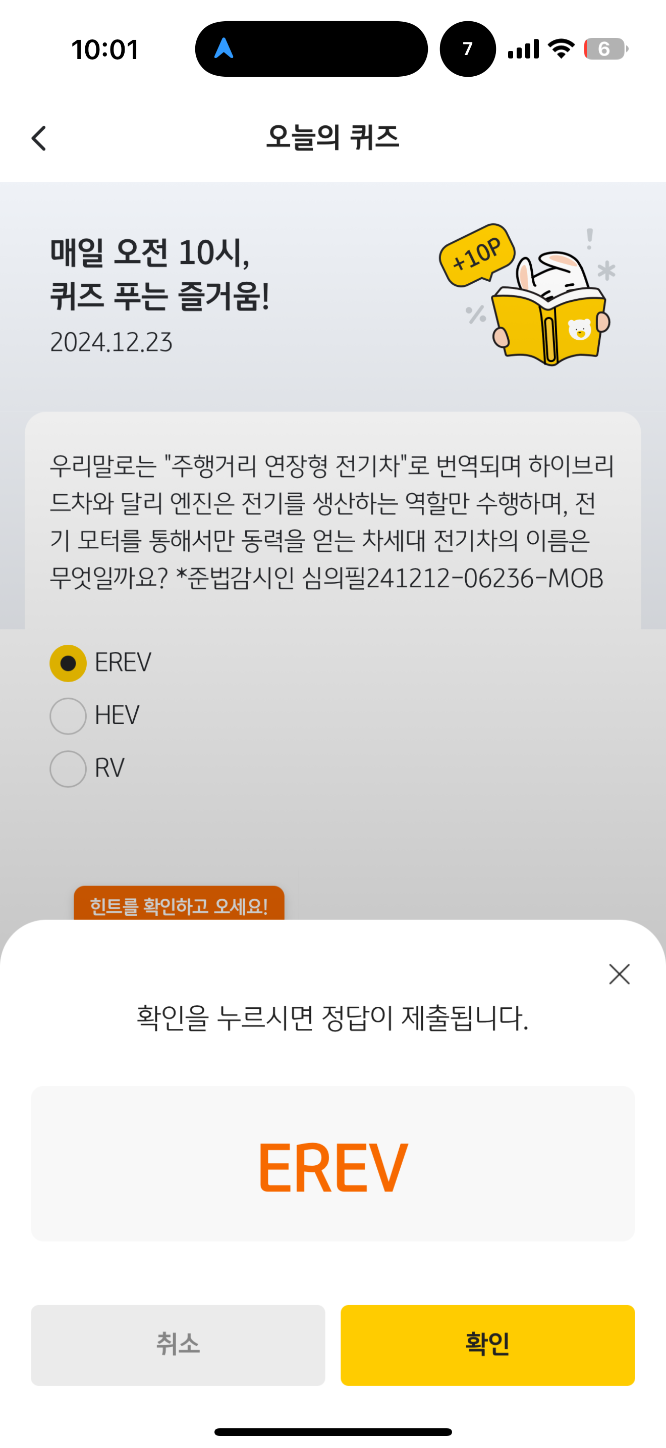 KB Pay 오늘의 퀴즈 정답은 EREV 입니다