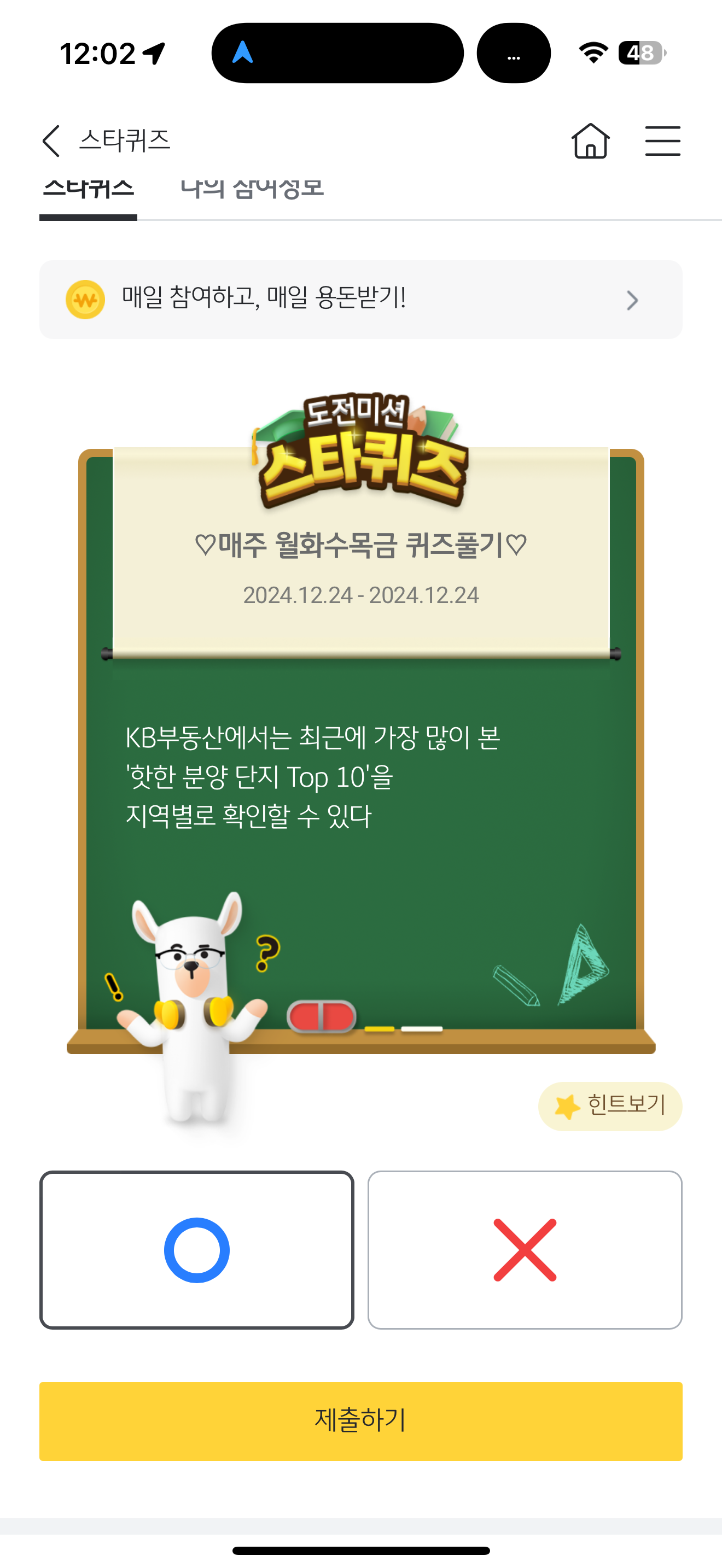 KB스타뱅킹 스타퀴즈 12월 24일 문제입니다