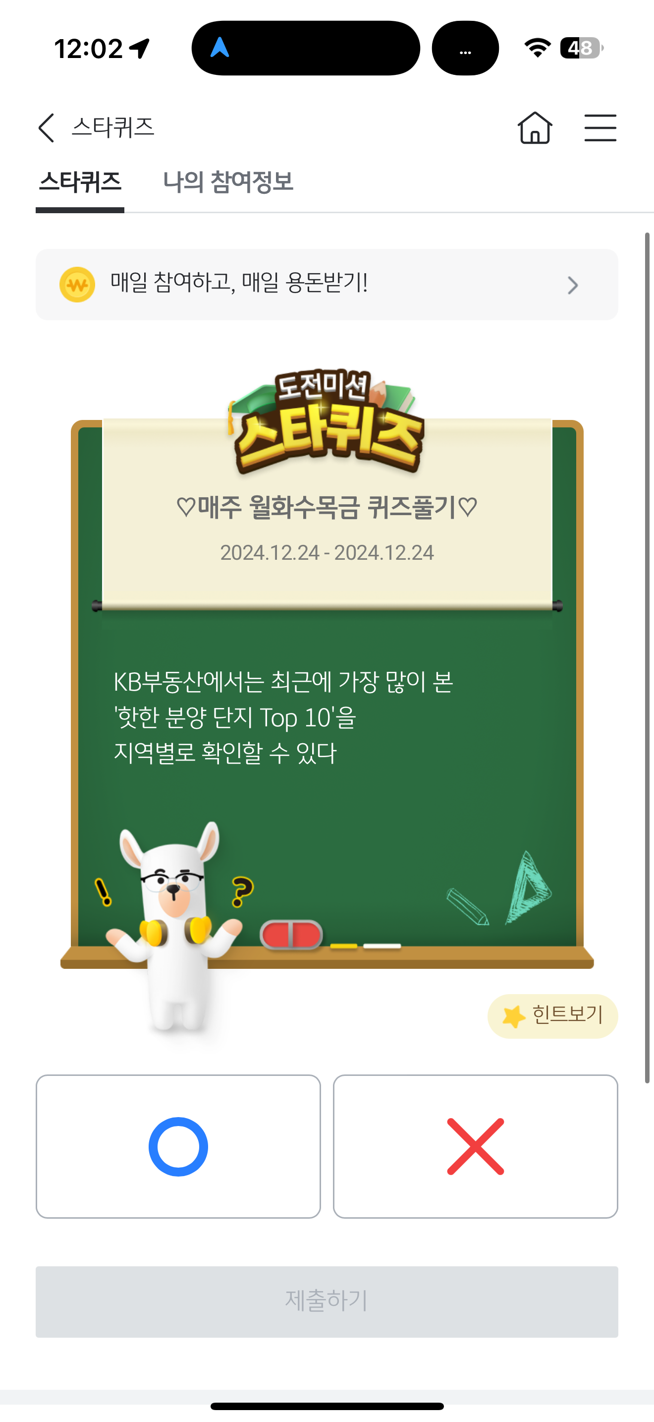 KB스타뱅킹 스타퀴즈 12월 24일 문제입니다