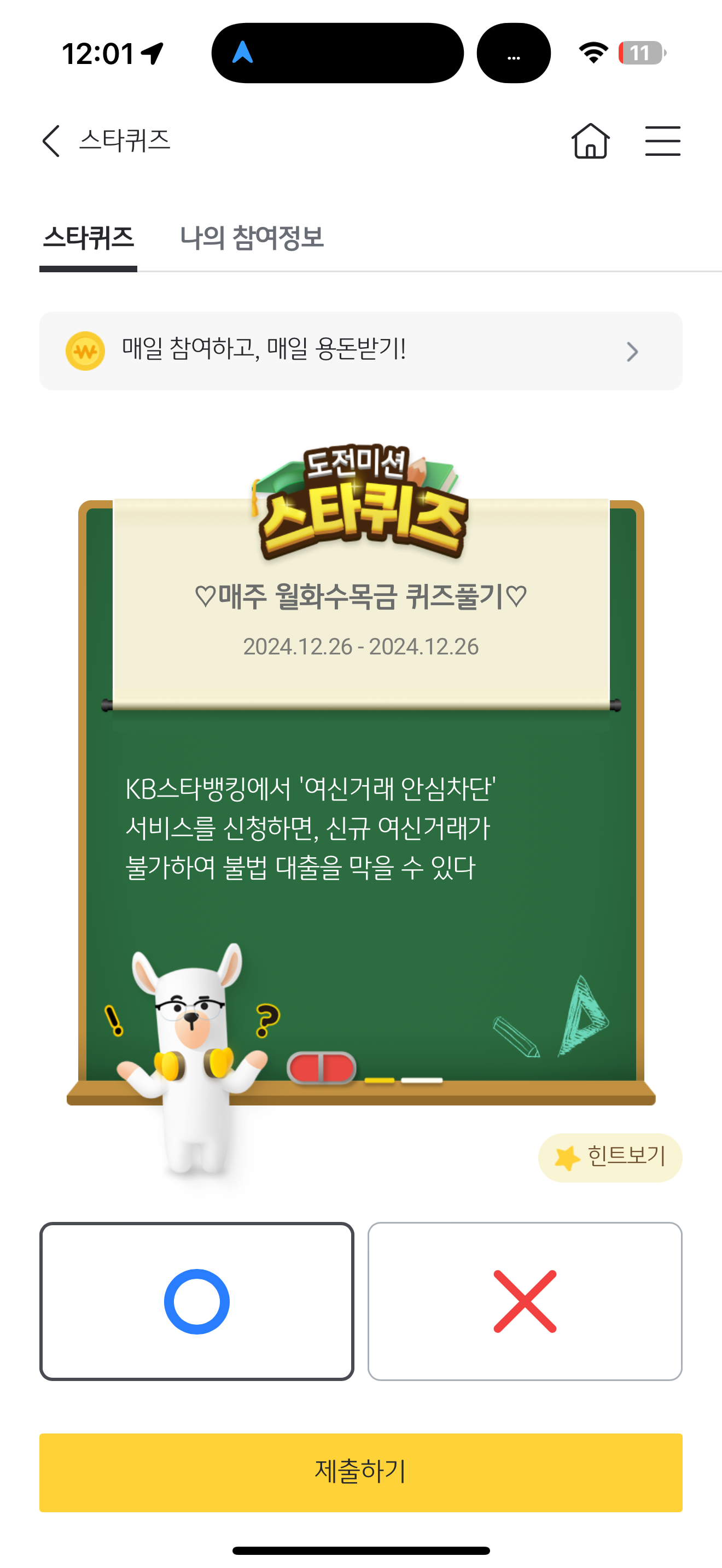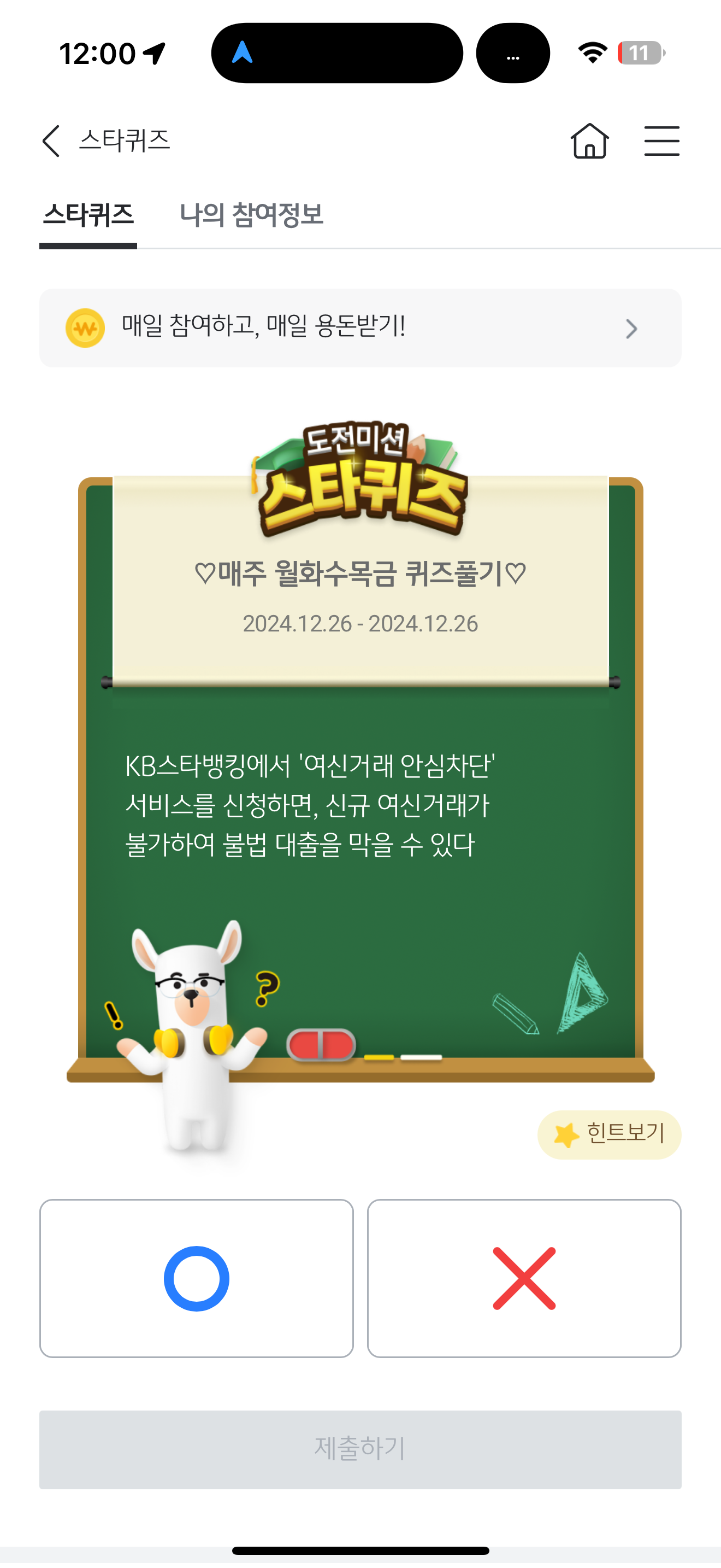 KB스타뱅킹 스타퀴즈 12월 26일 문제입니다