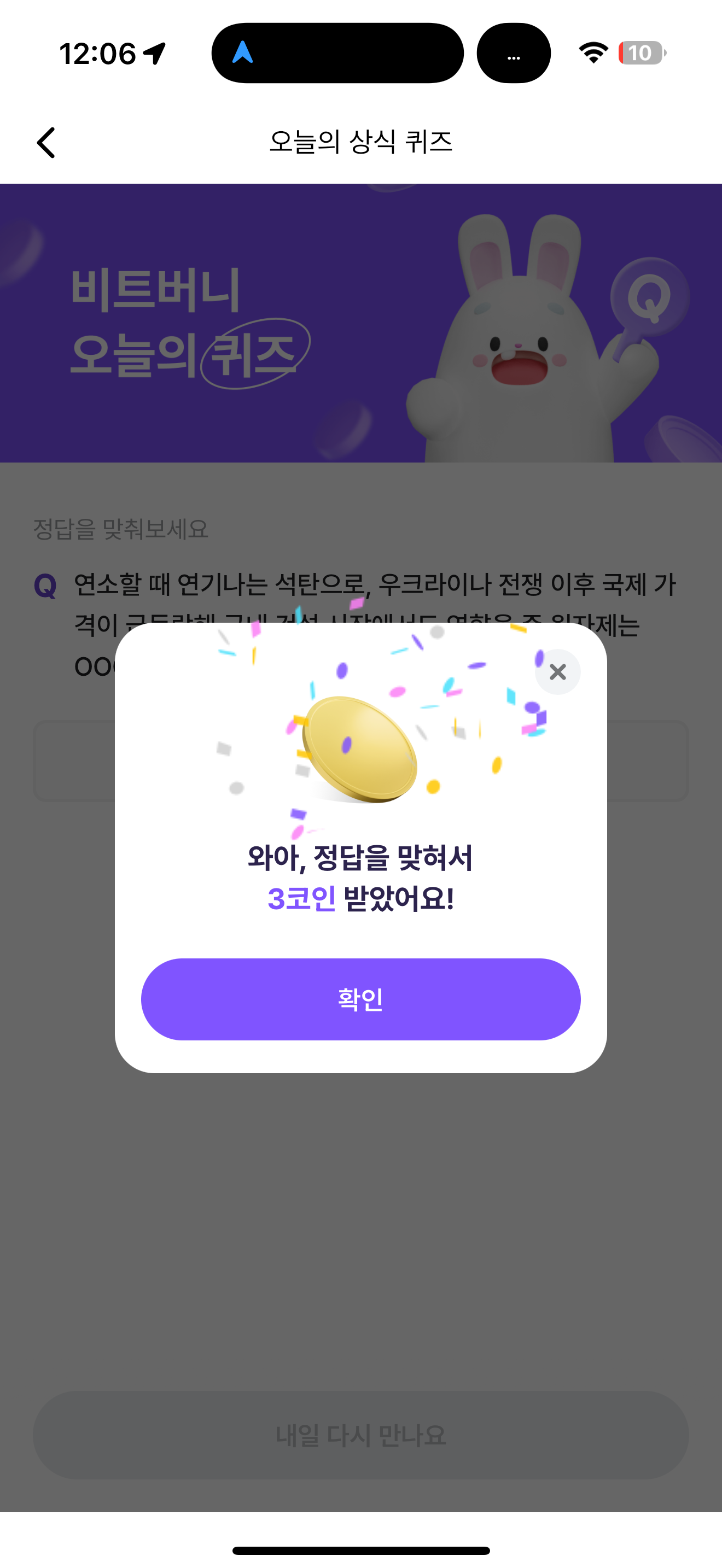 비트버니 오늘의 퀴즈 정답은 유연탄 입니다