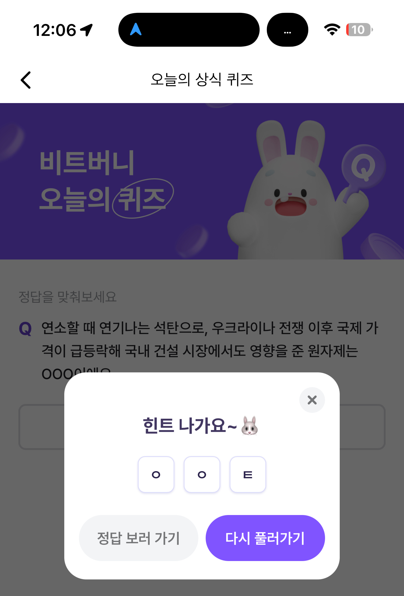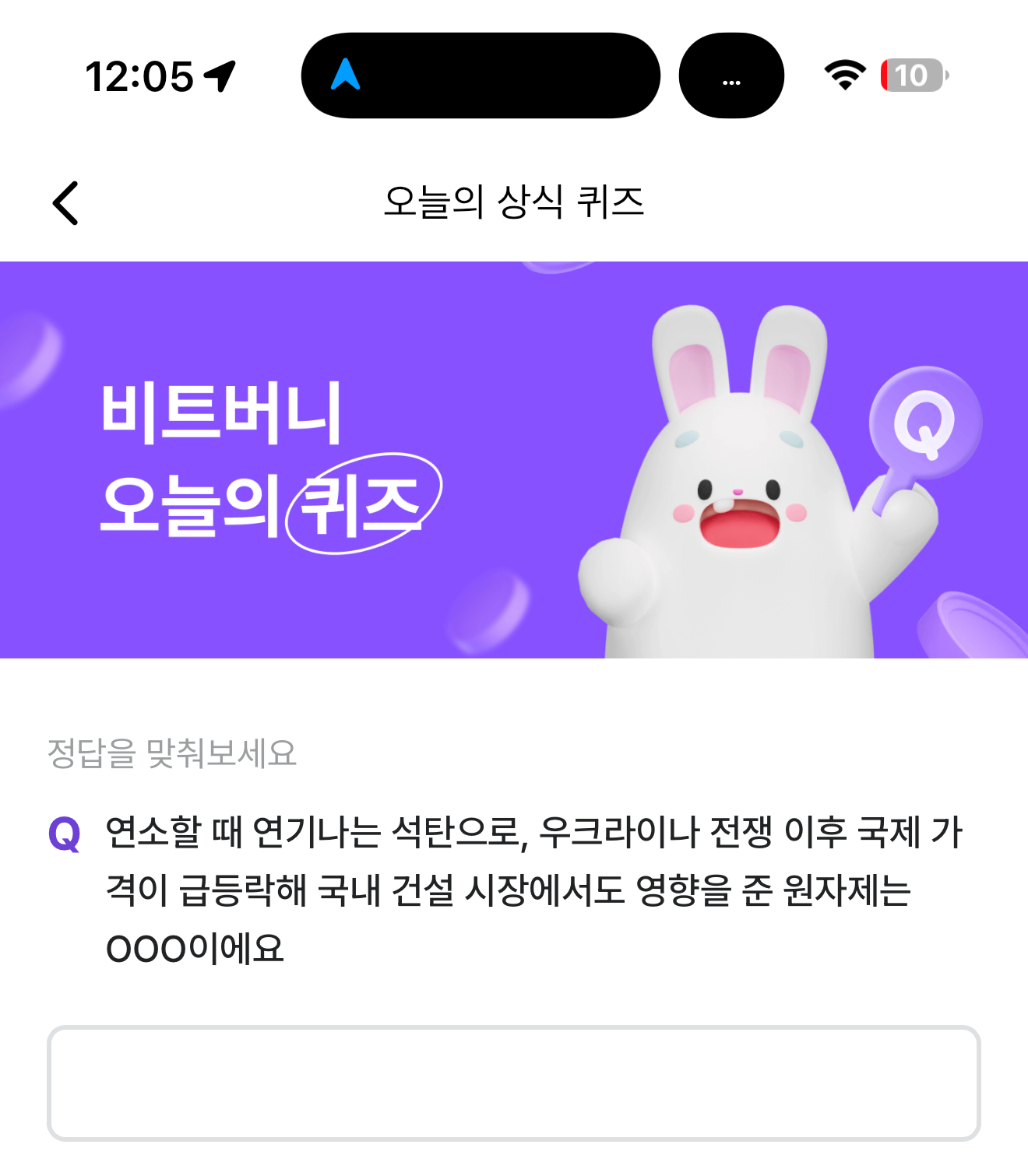 비트버니 오늘의 퀴즈 12월 26일 ㅇㅇㅌ정답(연소할 때 연기나는 석탄으로, 우크라이나 전쟁 이후 국제 가격이 급등락해 국내 건설 시장에서도 영향을 준 원자제는)