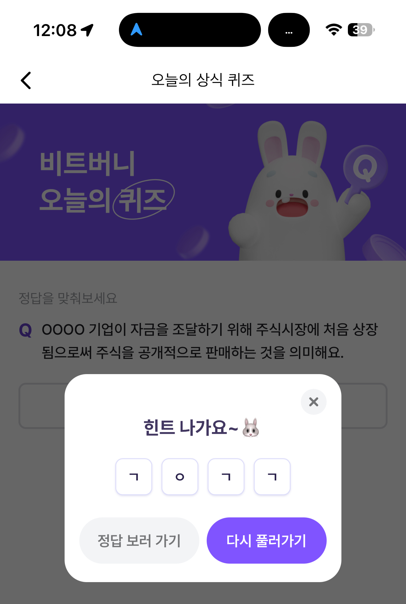 비트버니 오늘의 퀴즈 정답은 기업공개 입니다