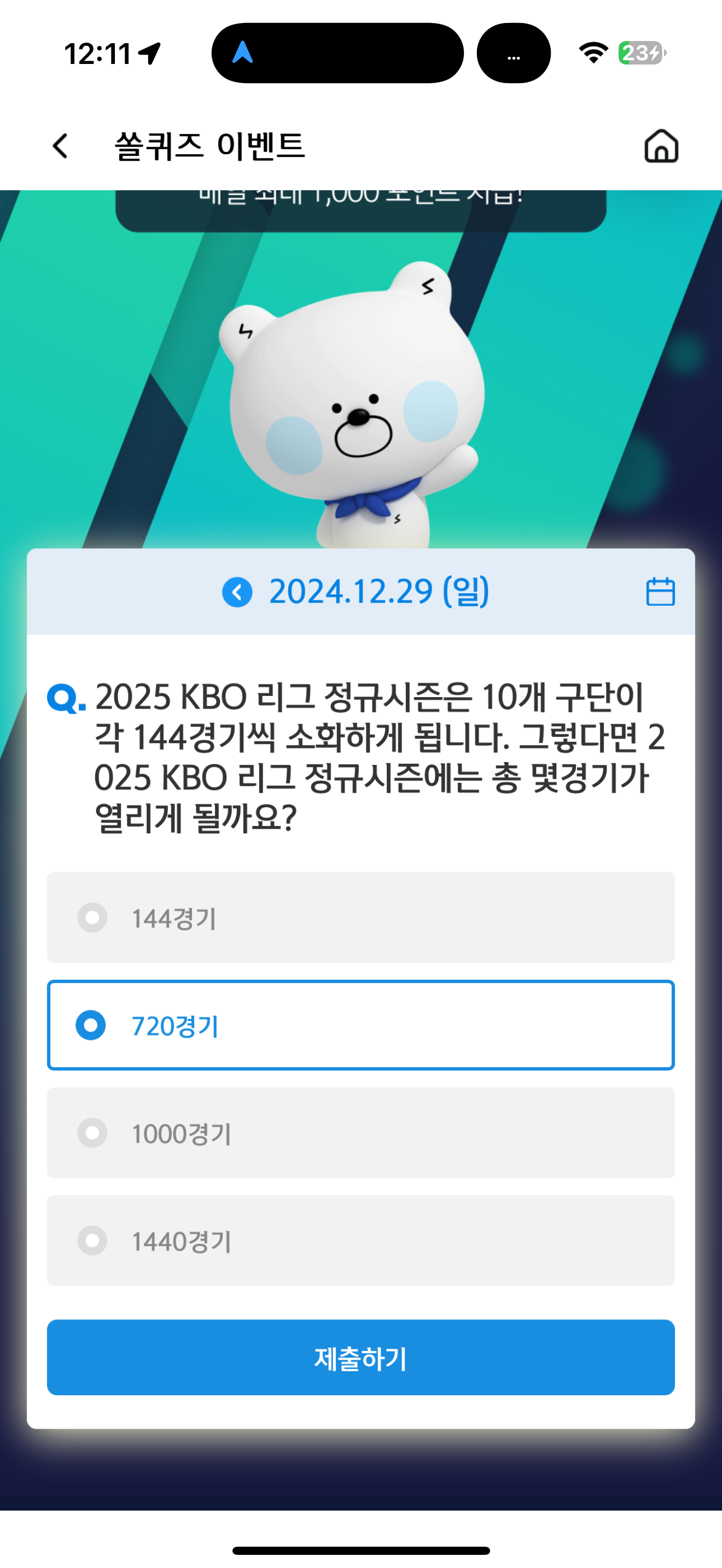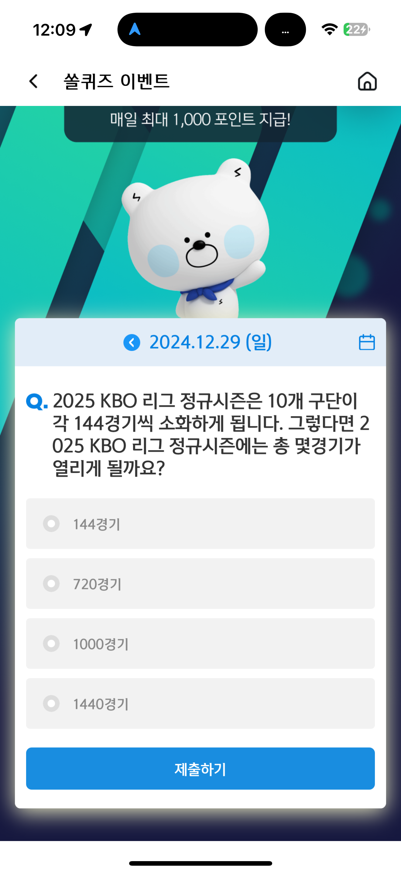 신한 슈퍼SOL 야구/상식 쏠퀴즈 12월 29일 문제입니다