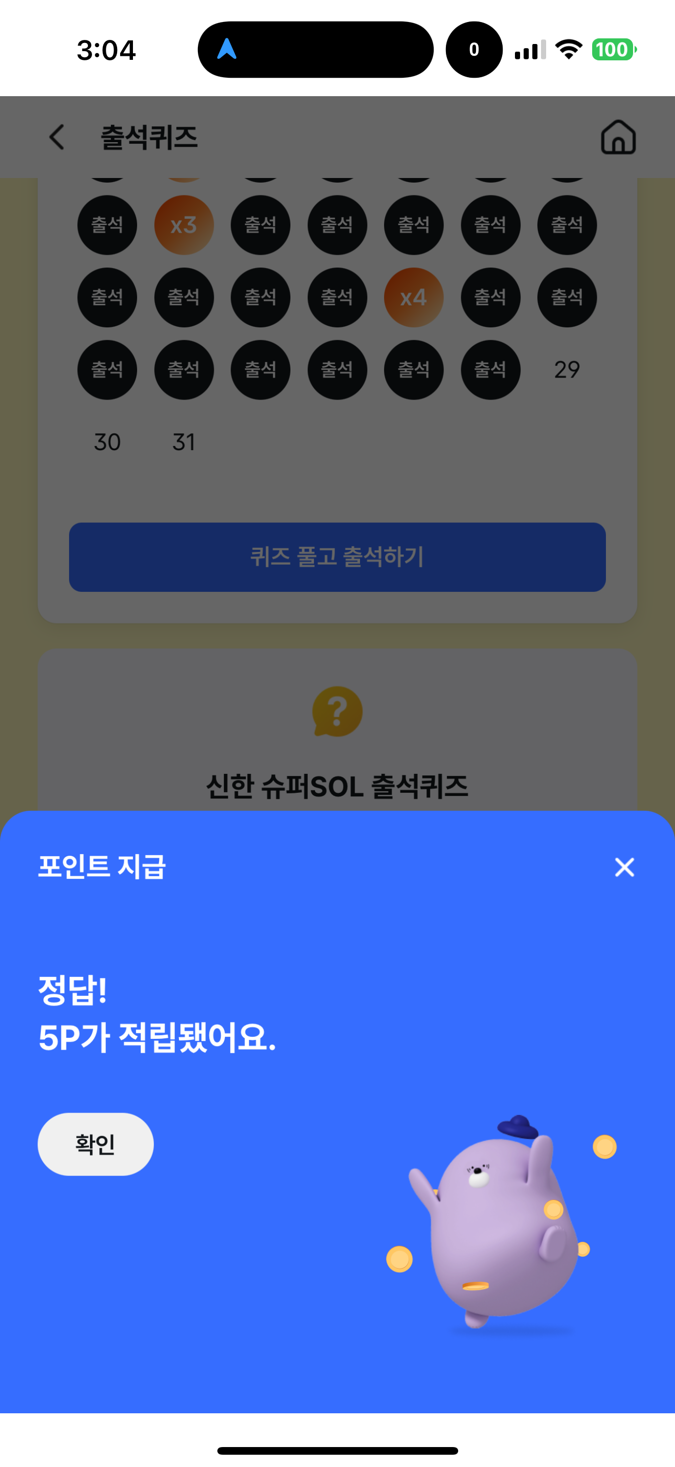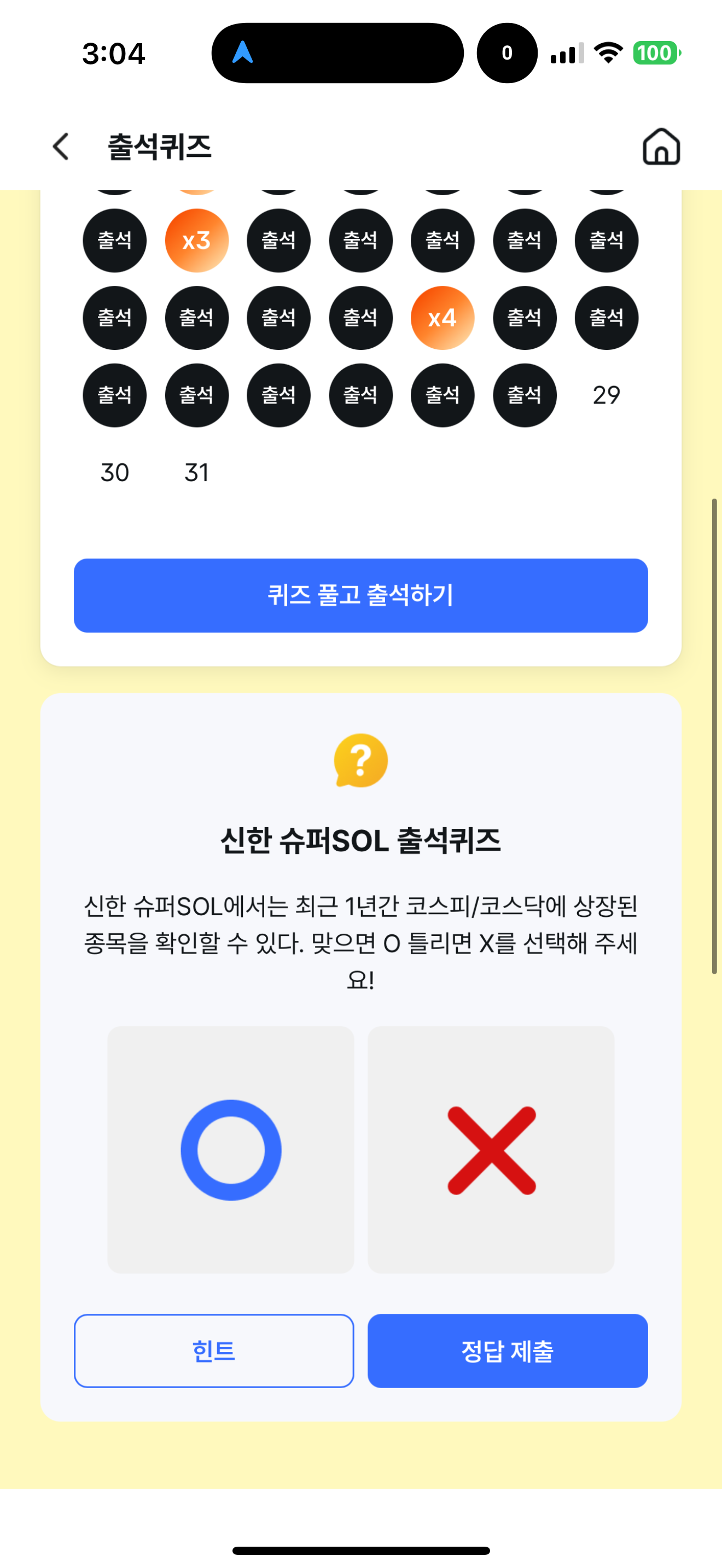 신한 슈퍼SOL 출석퀴즈 정답은 O 입니다