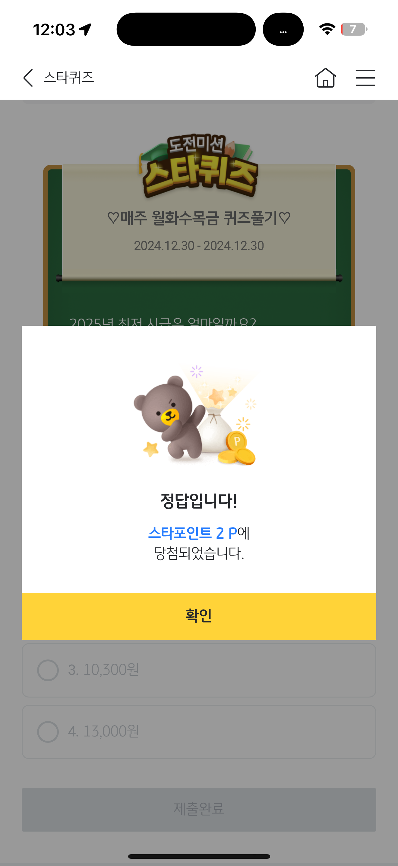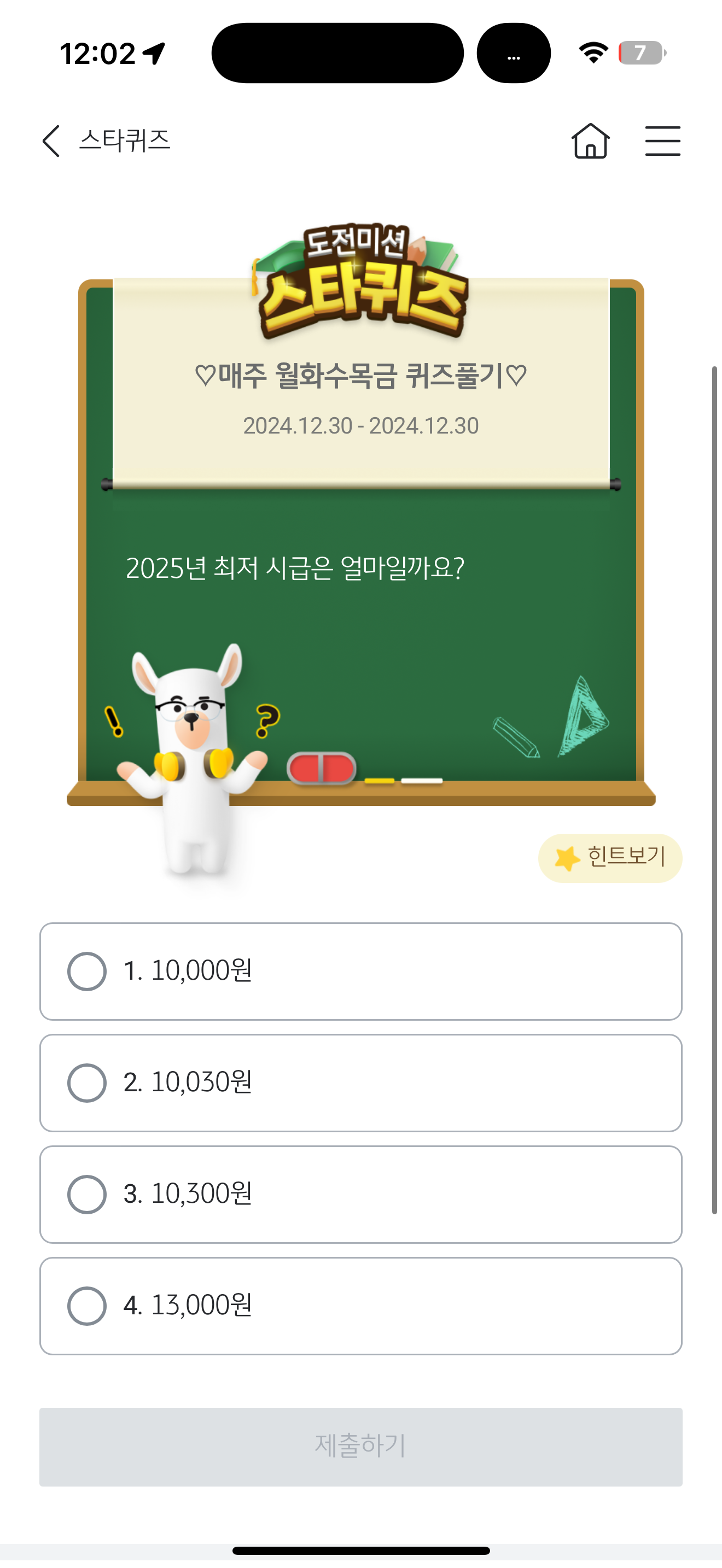 KB스타뱅킹 스타퀴즈 12월 30일 정답(2025년 최저 시급은 얼마일까요?)