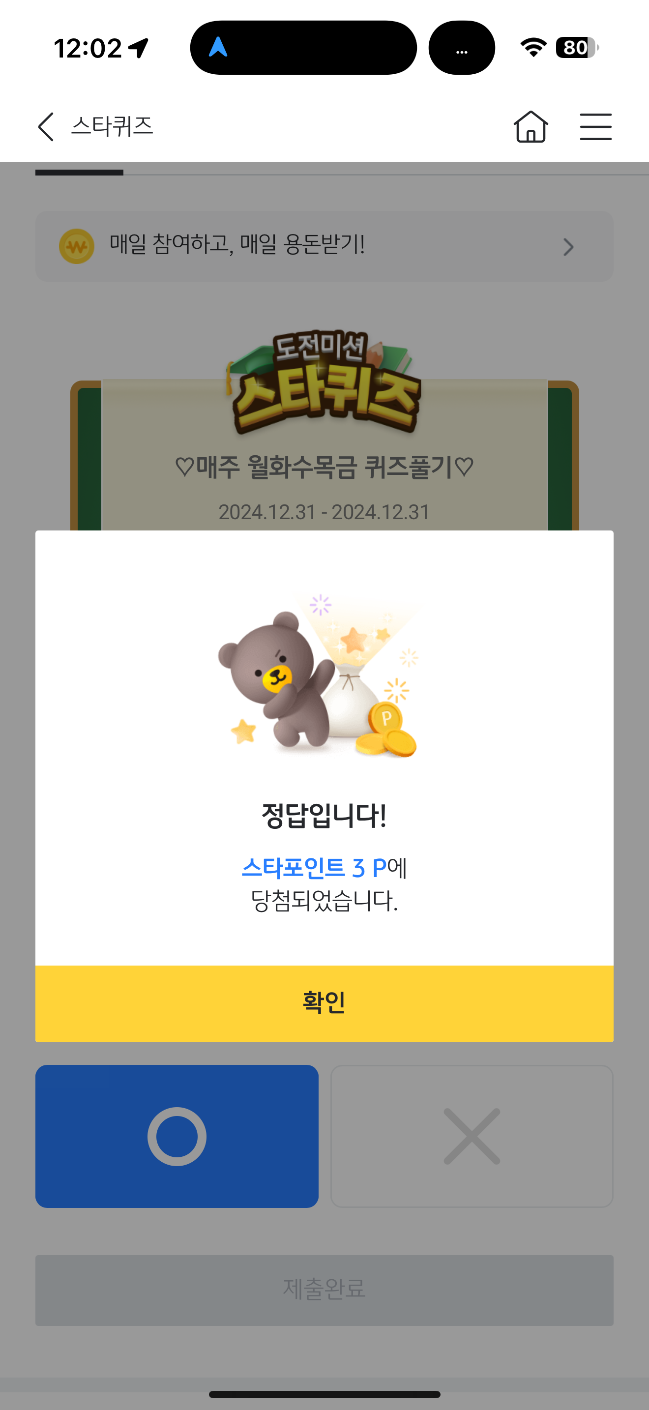 KB스타뱅킹 스타퀴즈 12월 31일 문제입니다