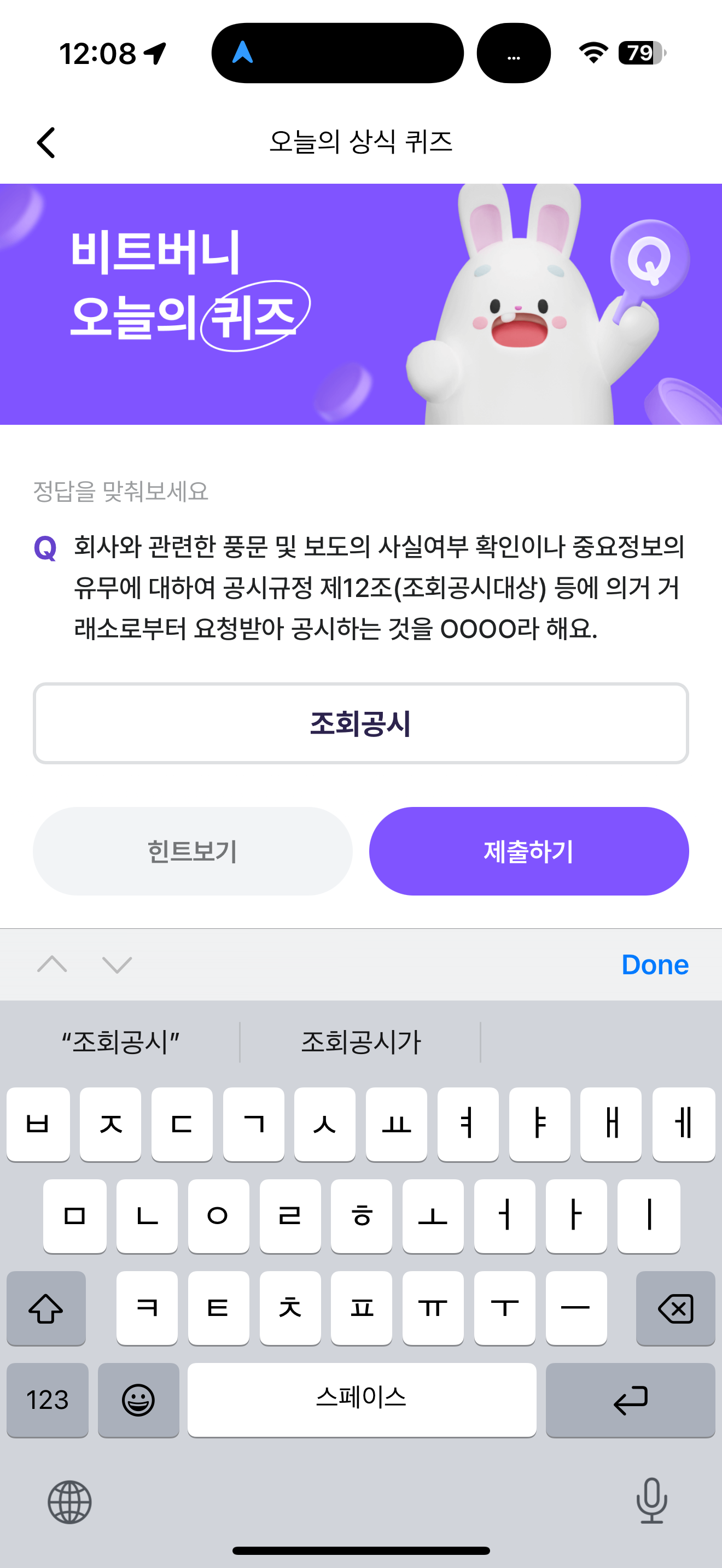 비트버니 오늘의 퀴즈 정답은 조회공시 입니다