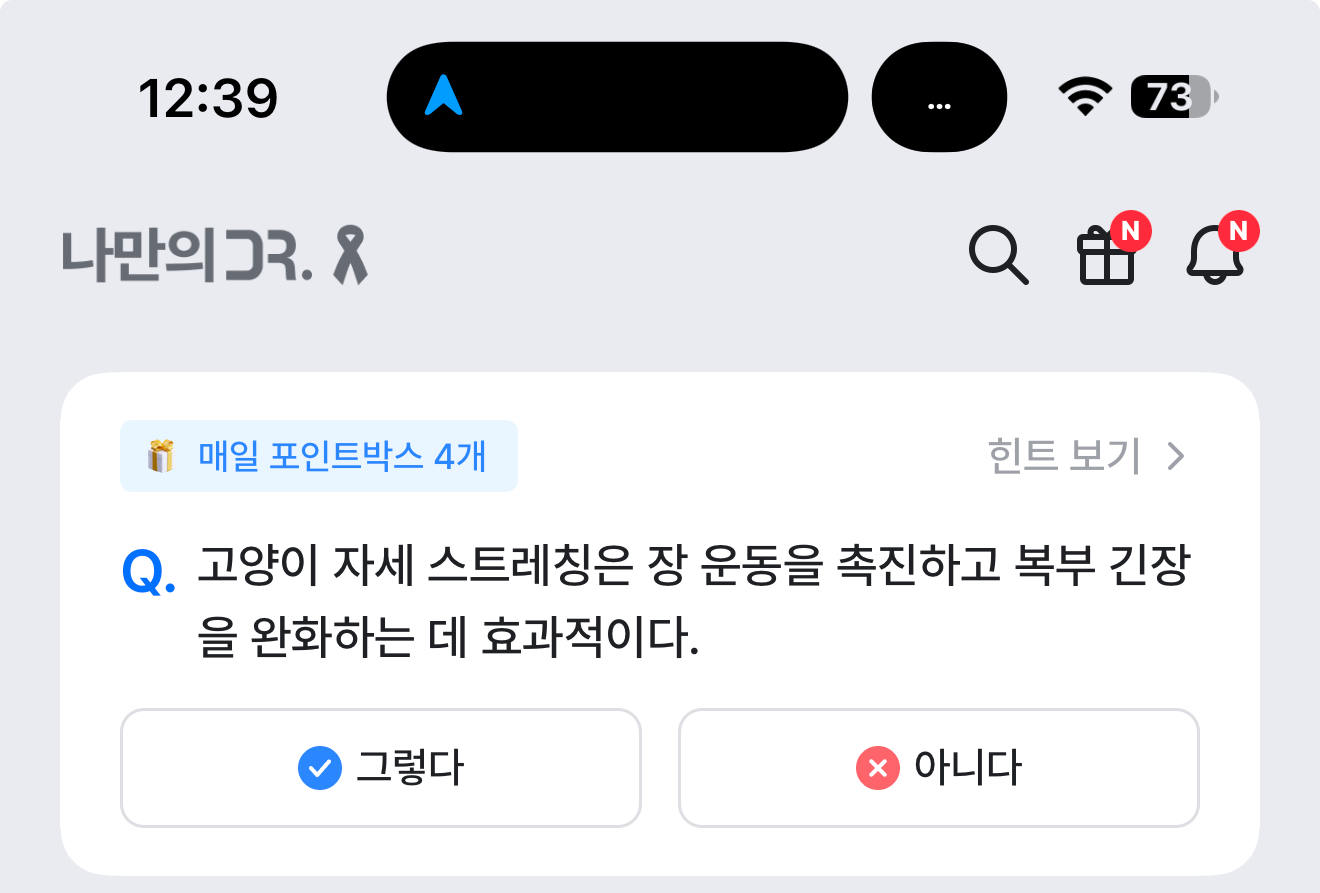 고양이 자세 스트레칭은 장 운동을 촉진하고 복부 긴장을 완화하는 데 효과적이다. 그렇다. 아니다 선택하면 되는데요. 고양이 자세 스트레칭 많이 보셨죠. 스트레칭은 몸의 균형감을 높여주고 신진대사를 활발하게 해주는데요. 과연 고양이 자세 스트레칭이 장 운동을 촉진하고 복부 긴장을 완화시켜 줄까요?