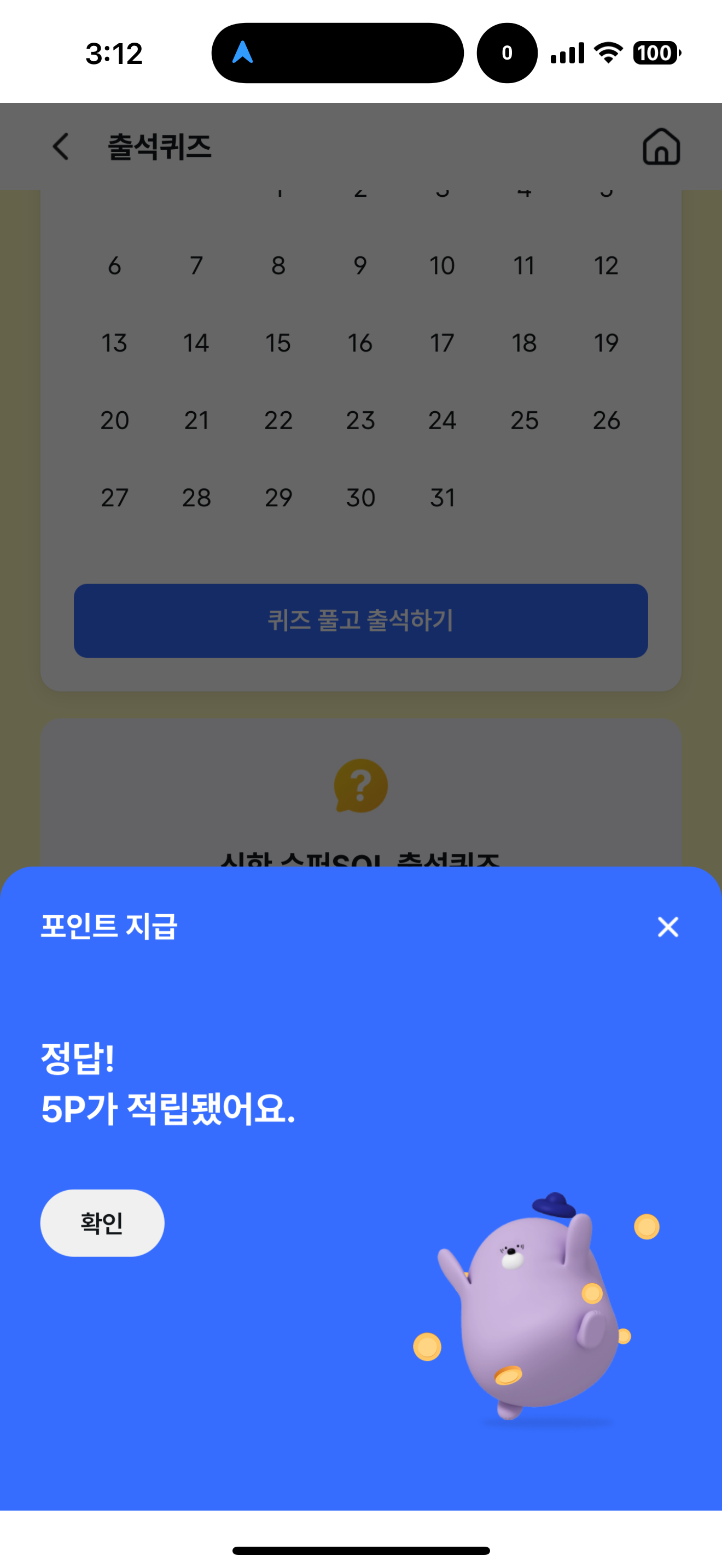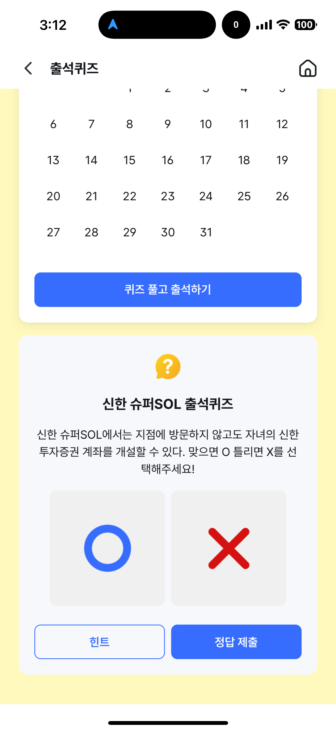 신한 슈퍼SOL 출석퀴즈 정답은 O 입니다