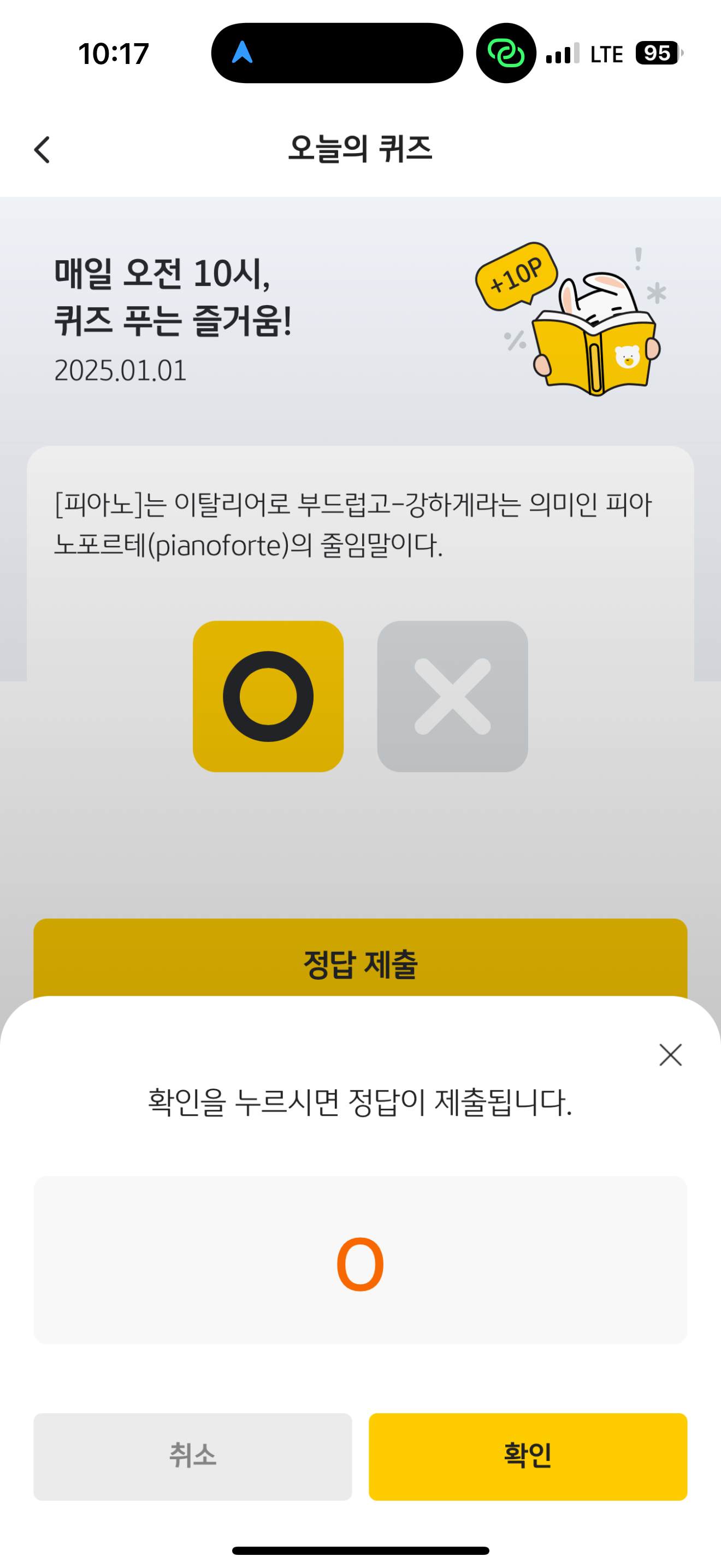 Kb pay 오늘의 퀴즈 정답은 o 입니다