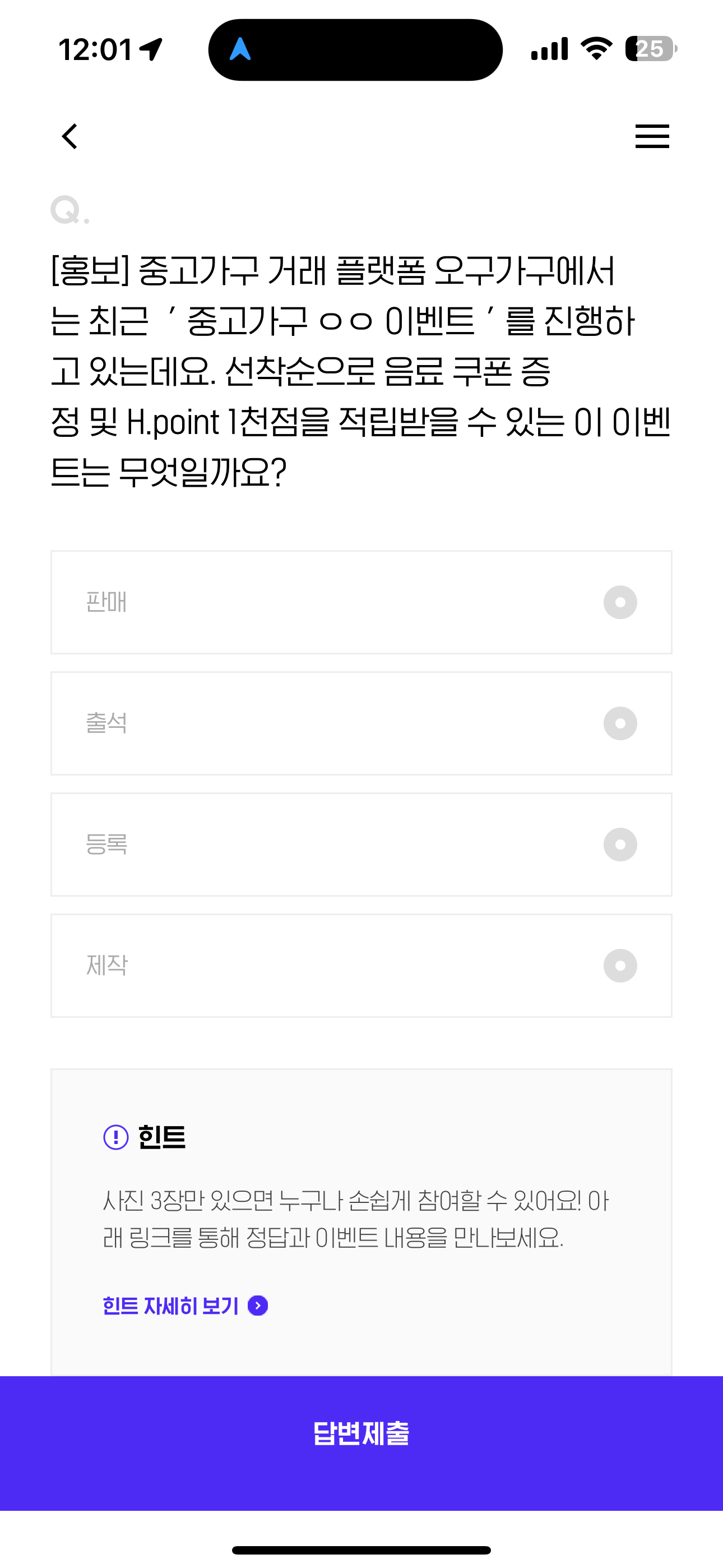 H포인트 퀴즈 정답은 등록 입니다