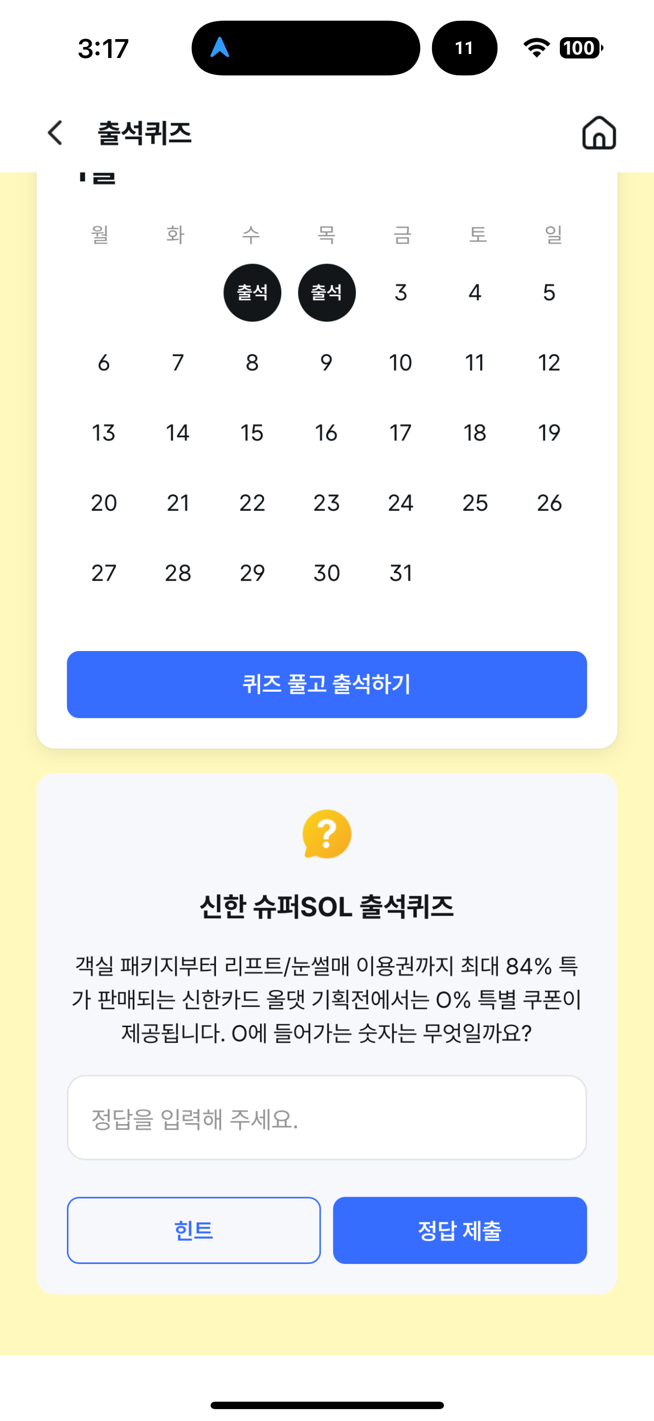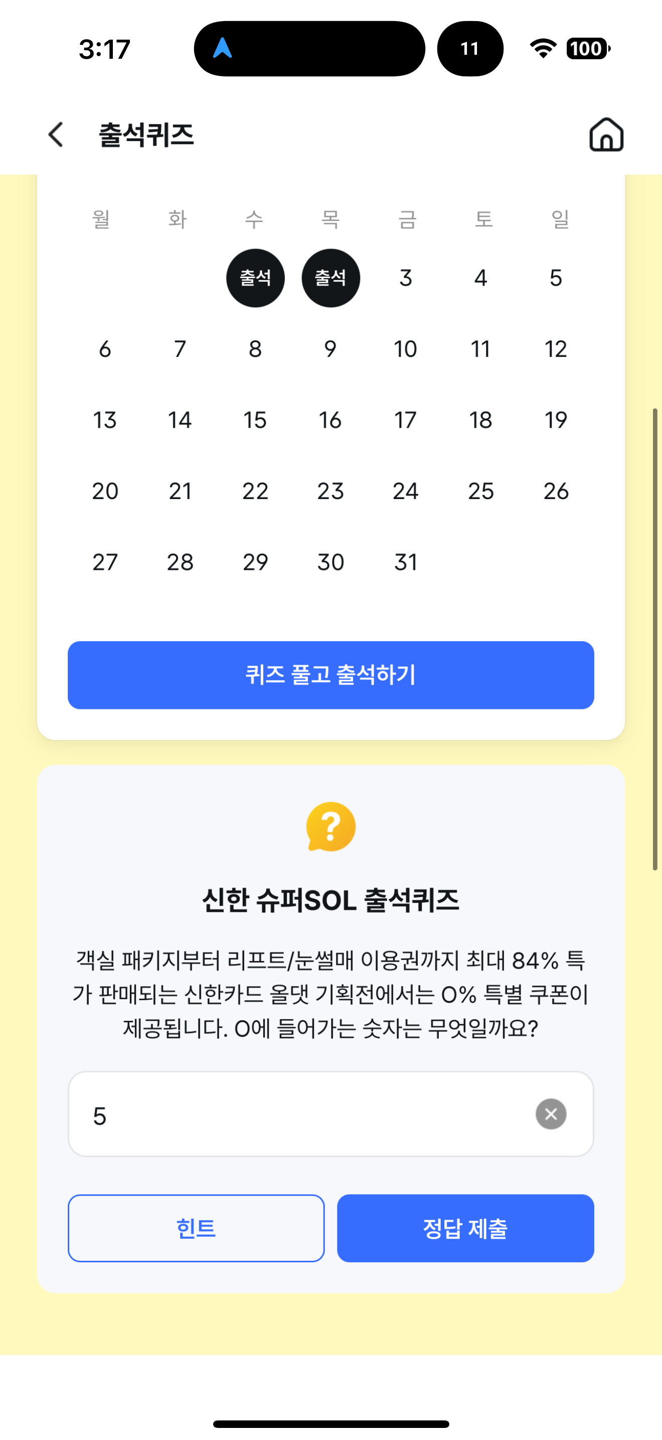 신한 슈퍼SOL 출석퀴즈 정답은 5 입니다