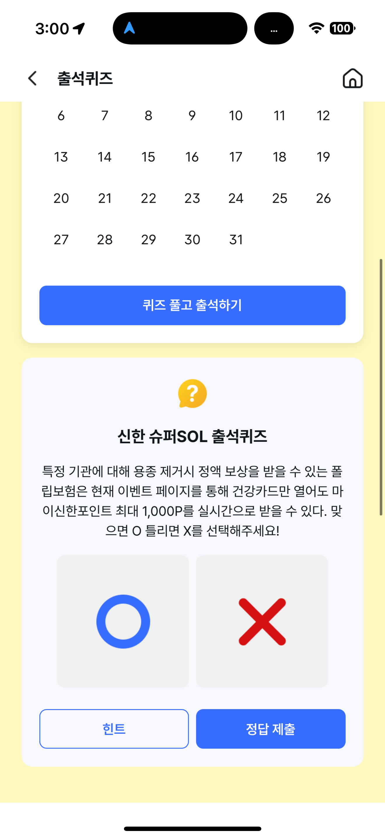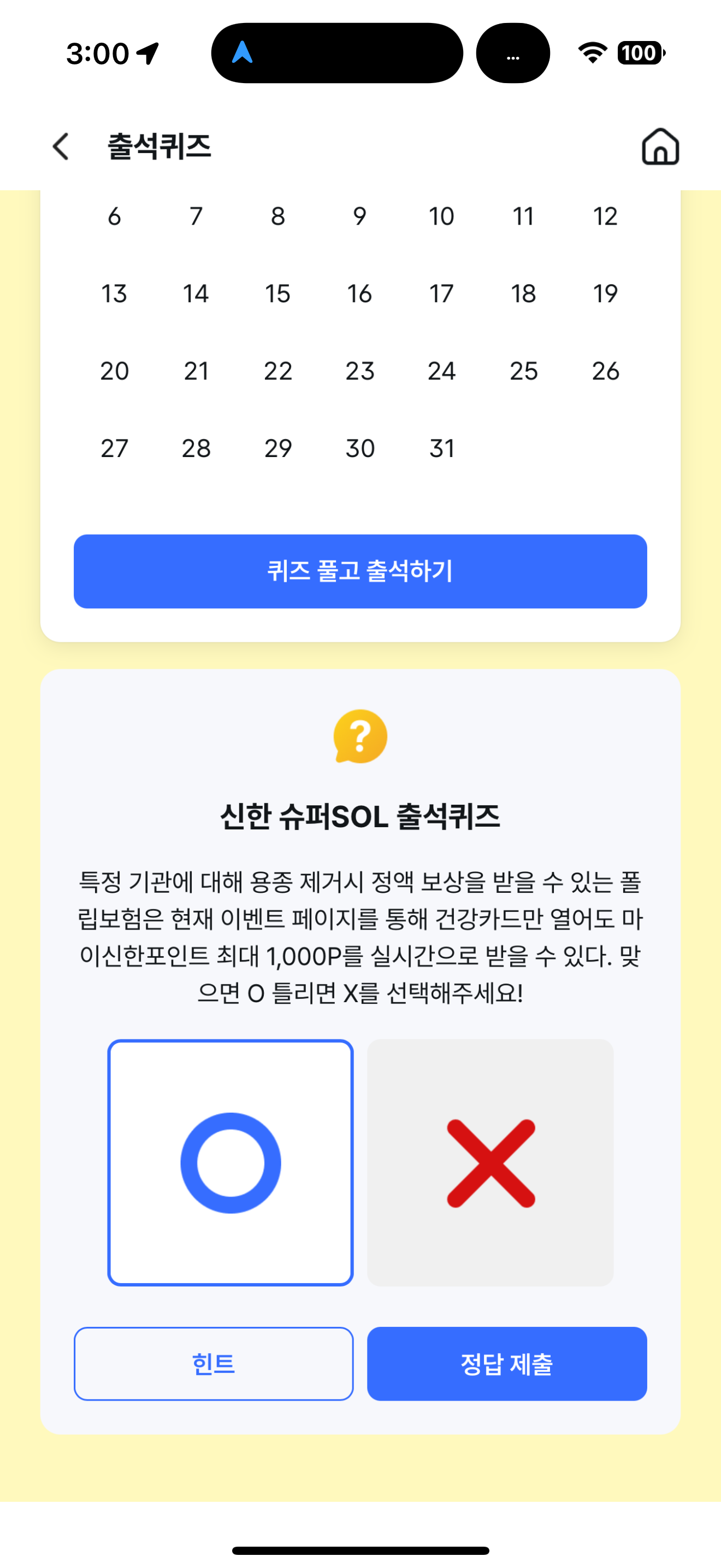 신한 슈퍼SOL 출석퀴즈 정답은 O 입니다
