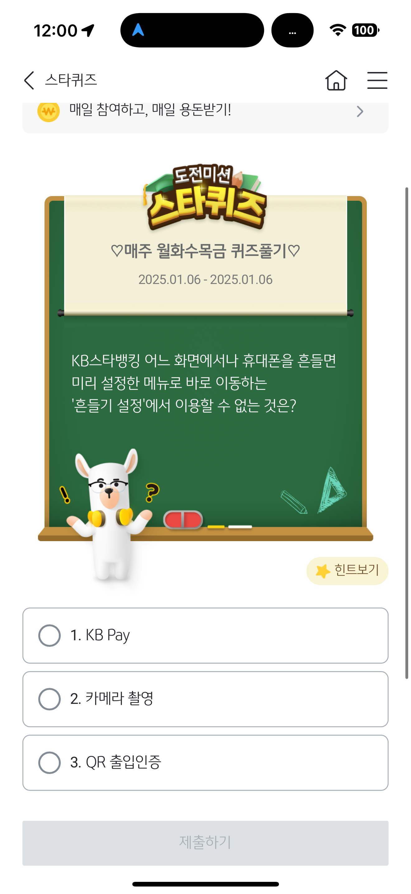 KB스타뱅킹 스타퀴즈 1월 6일 문제입니다