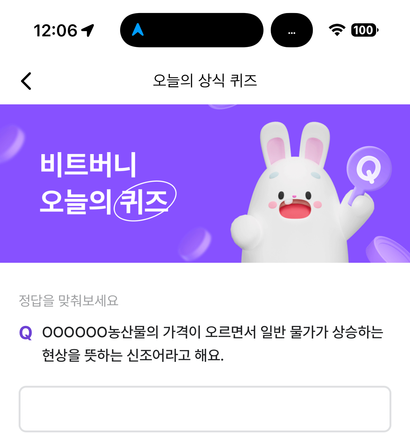 비트버니 오늘의 퀴즈 초성 힌트는 ㅇㄱㅍㄹㅇㅅ 입니다