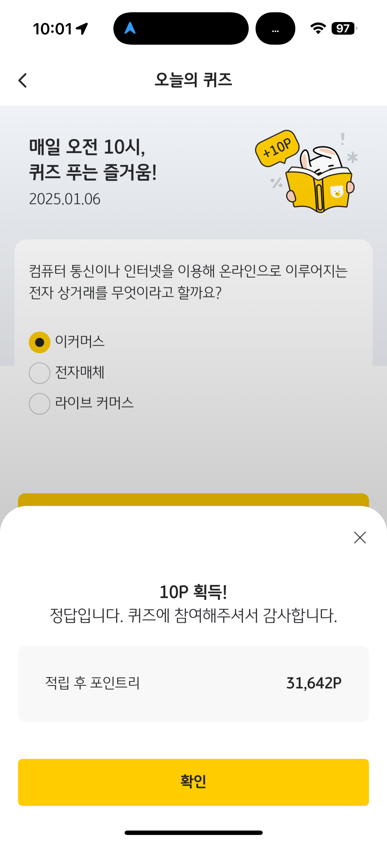 KB Pay 오늘의 퀴즈 1월 6일 정답(컴퓨터 통신이나 인터넷을 이용해 온라인으로 이루어지는 전자 상거래를 무엇이라고 할까요?)