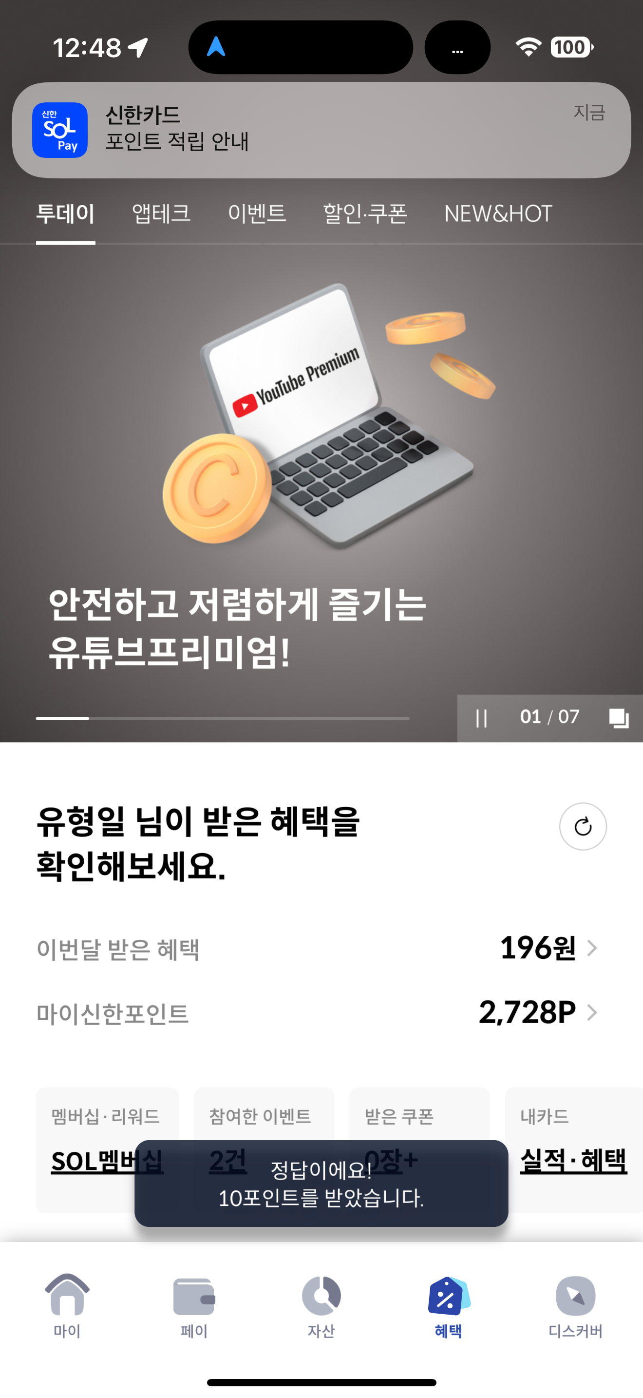 신한카드 퀴즈팡팡 1월 7일 문제입니다
