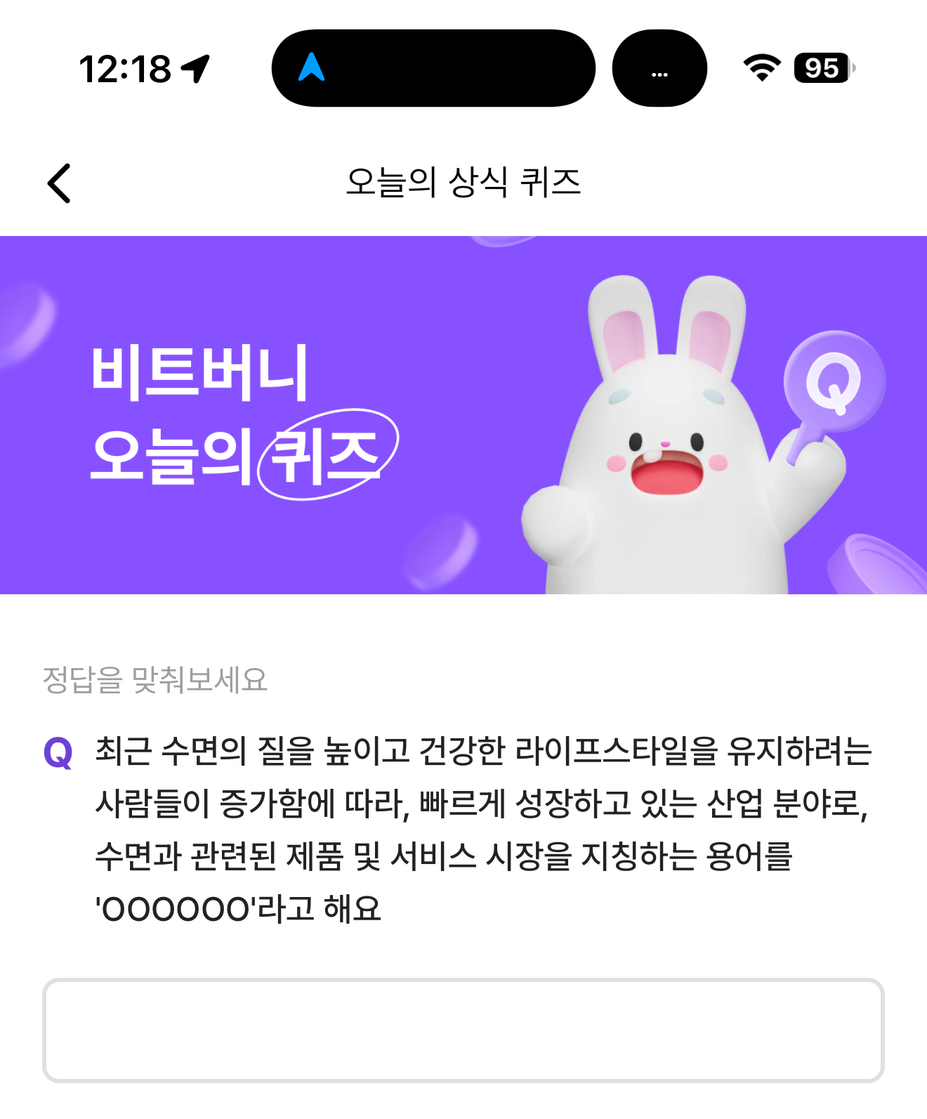 최근 수면의 질을 높이고 건강한 라이프스타일을 유지하려는 사람들이 증가함에 따라, 빠르게 성장하고 있는 산업 분야로, 수면과 관련된 제품 및 서비스 시장을 지칭하는 용어를 'OOOOOO'라고 해요 주관식 퀴즈인데요. 수면의 질이 건강과 직결된다고 하는데요. 이 산업이 굉장히 중요해 지고 있습니다.