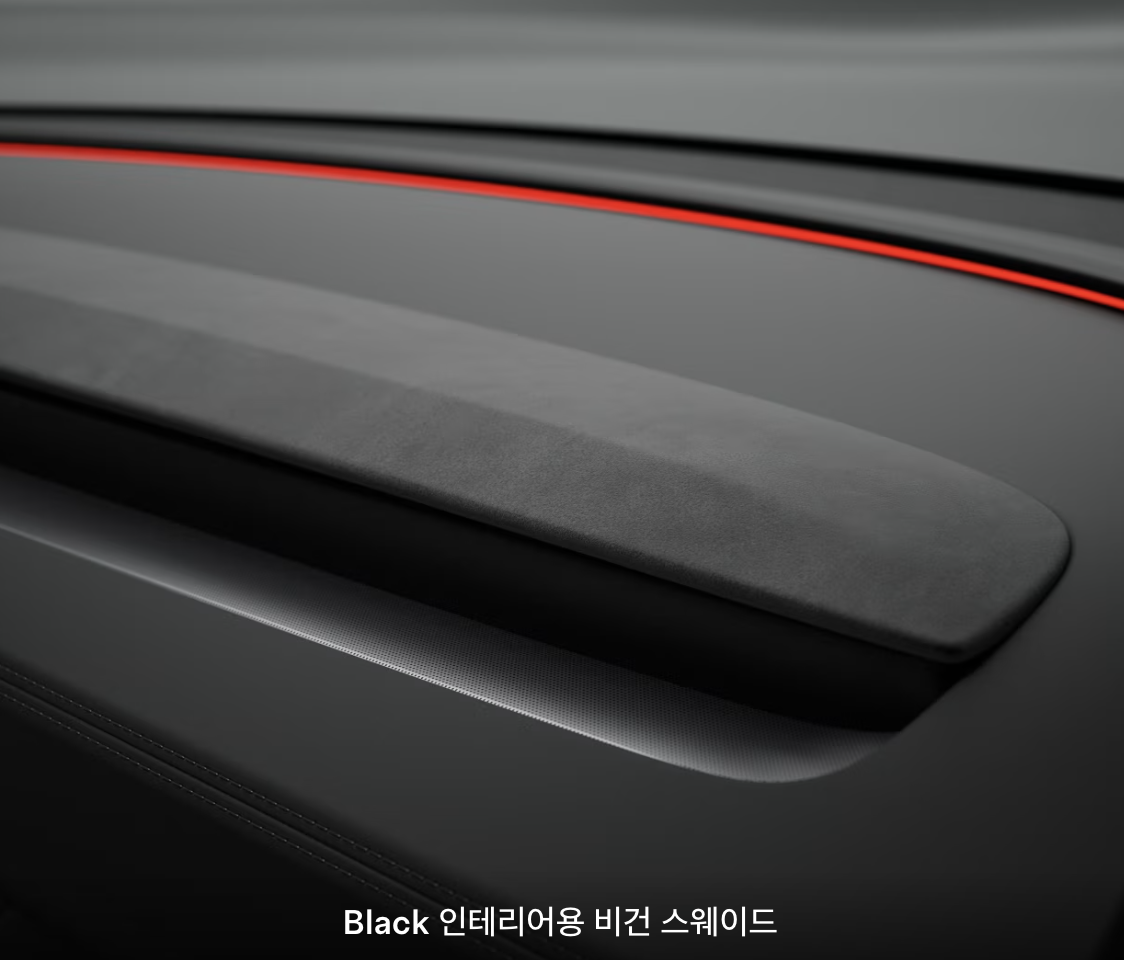그리고 블랙 인테리어용 비건 스웨이드가 적용되어 있습니다. 블랙 인테리어에서 고급스러운 디자인 포인트를 볼 수 있습니다.