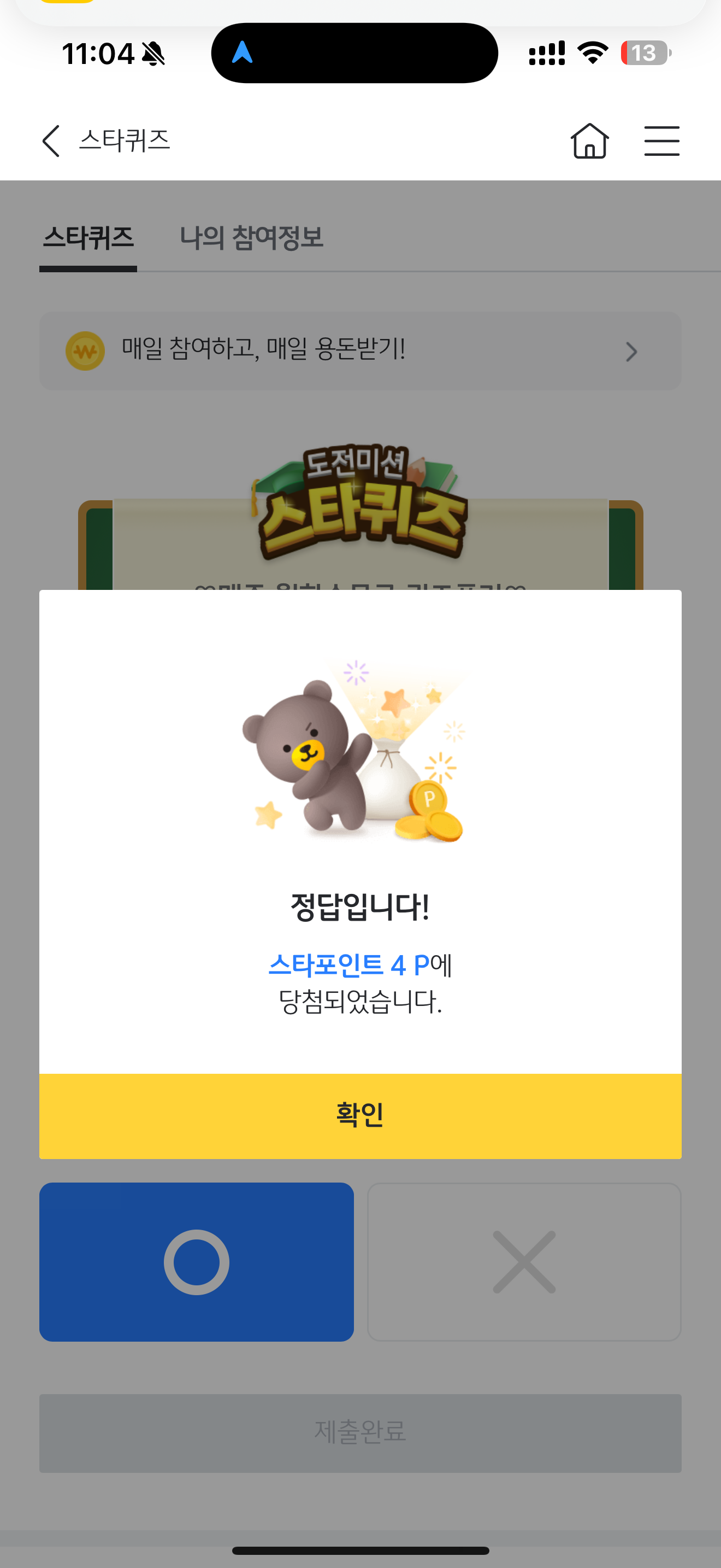 KB스타뱅킹 스타퀴즈 정답은 O 입니다