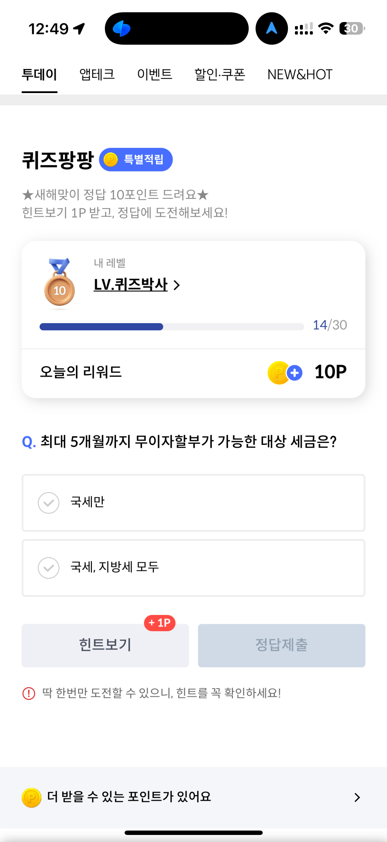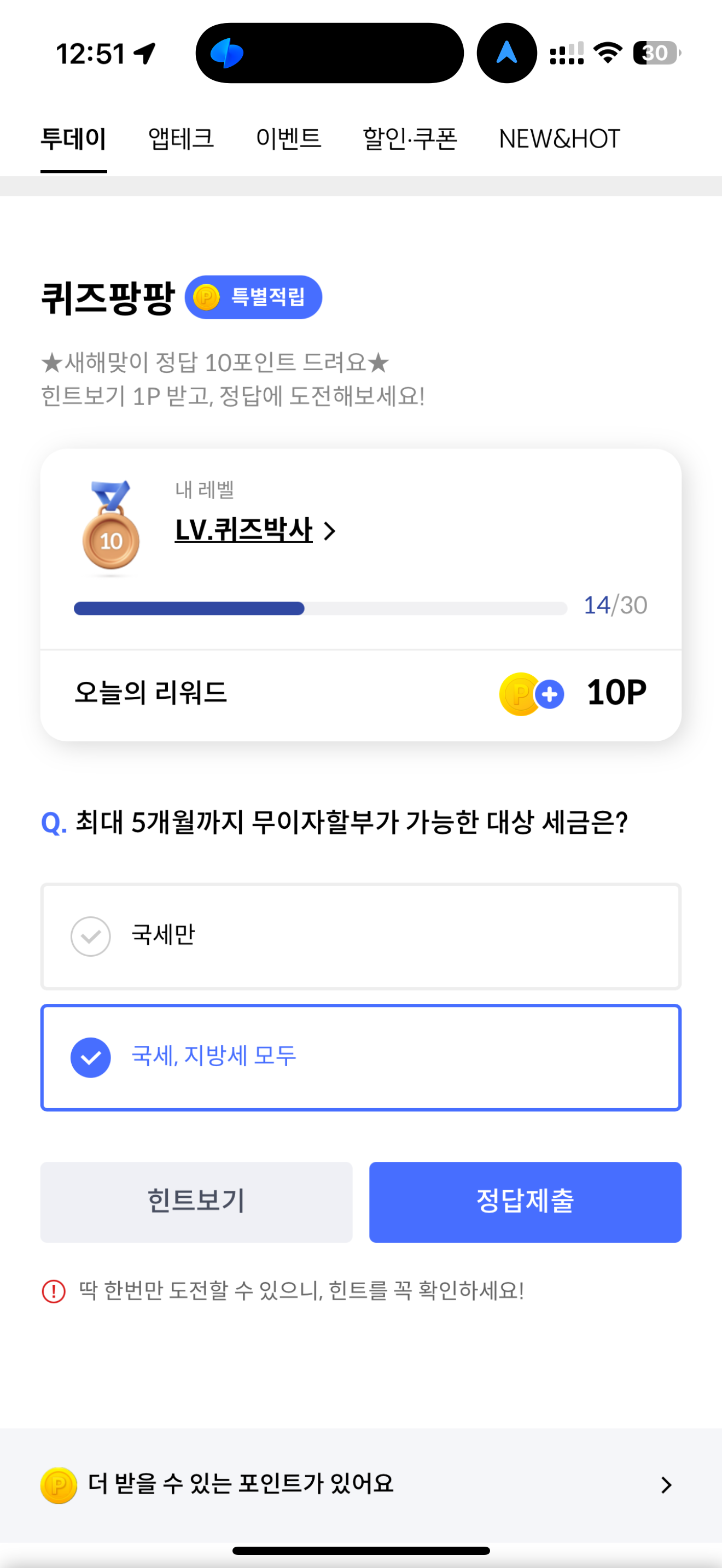 신한카드 퀴즈팡팡 정답은 국세, 지방세 모두 입니다