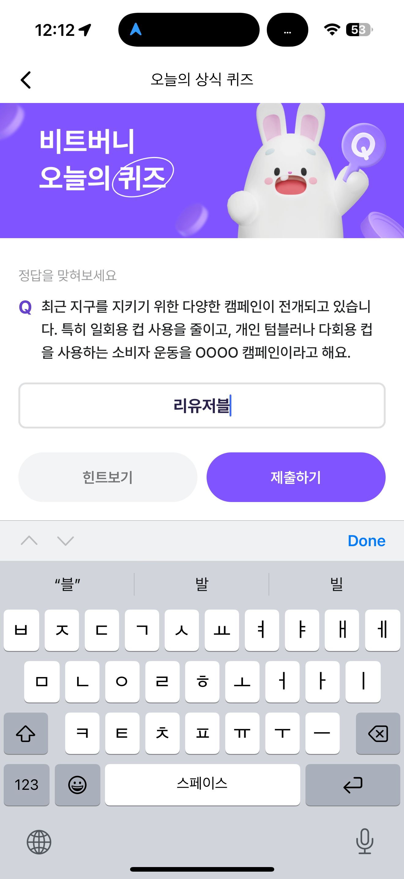 비트버니 오늘의 퀴즈 정답은 리유저블 입니다